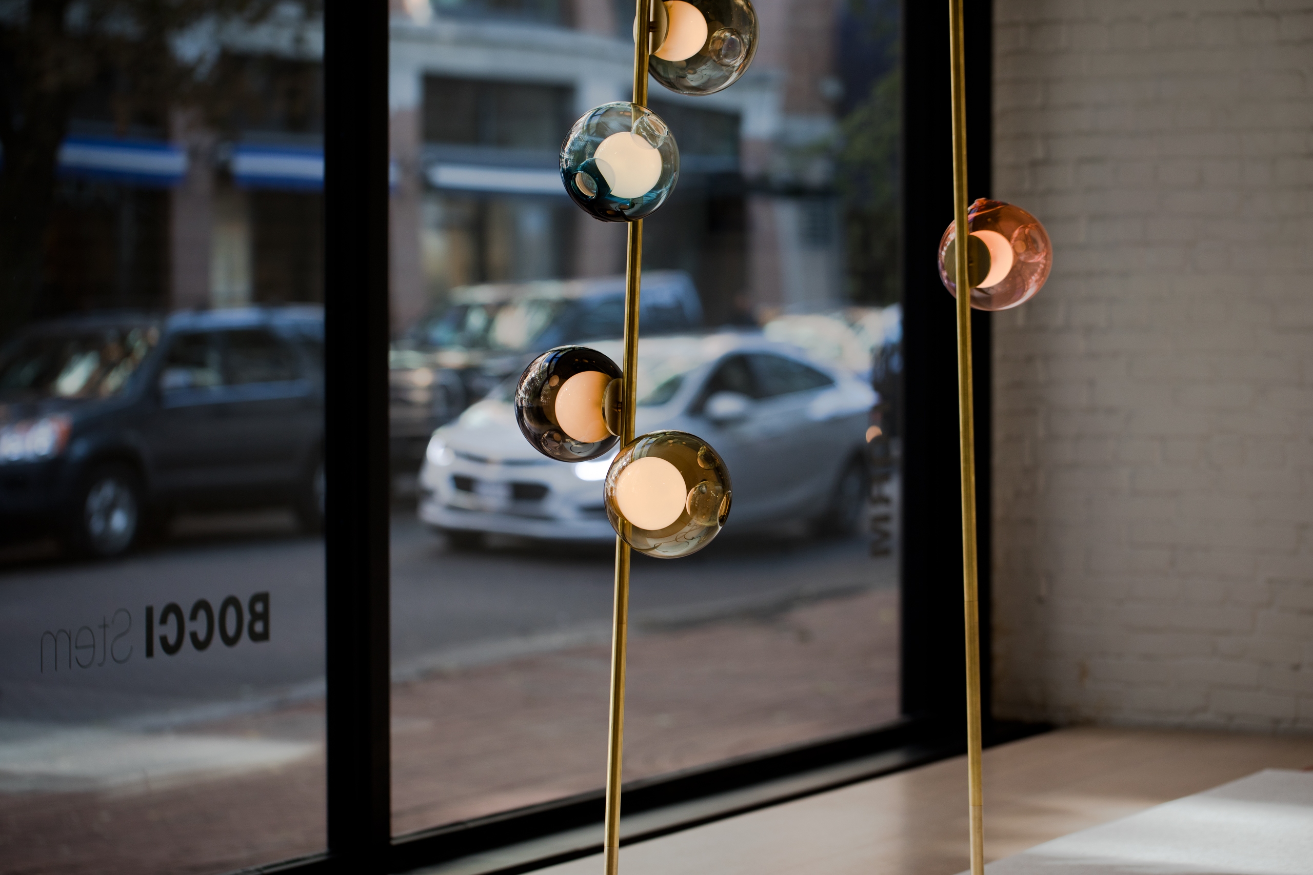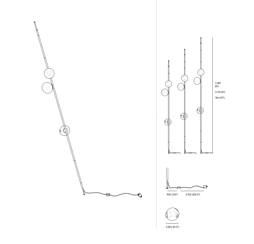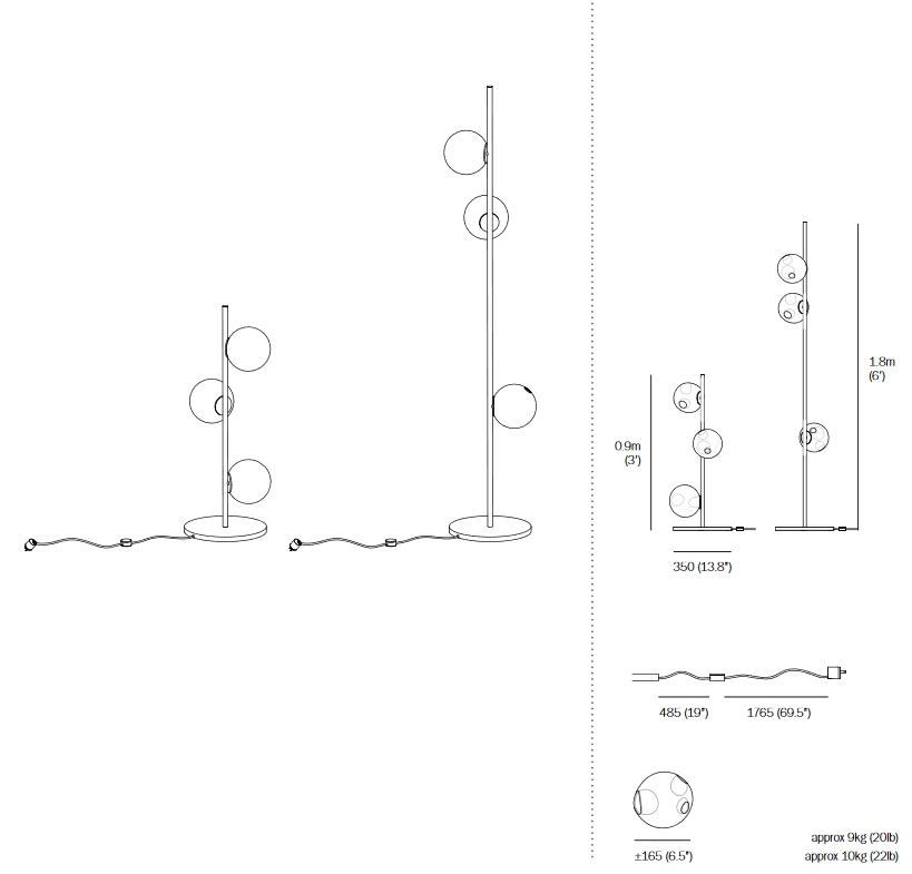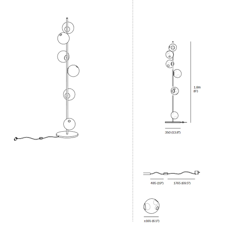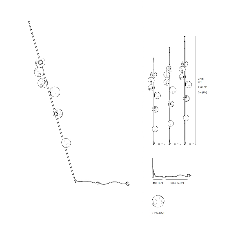 28 Stem Торшер Bocci28 Stem, разработанный Омером Арбелем для Bocci, представляет собой торшер с трубчатой структурой и круглым латунным основанием, доступный в двух различных вариантах отделки: латунный или матовый черный. Рассеиватели изготовлены из дутого стекла со светодиодным источником света. 28 Шток доступен в различных версиях и размерах.