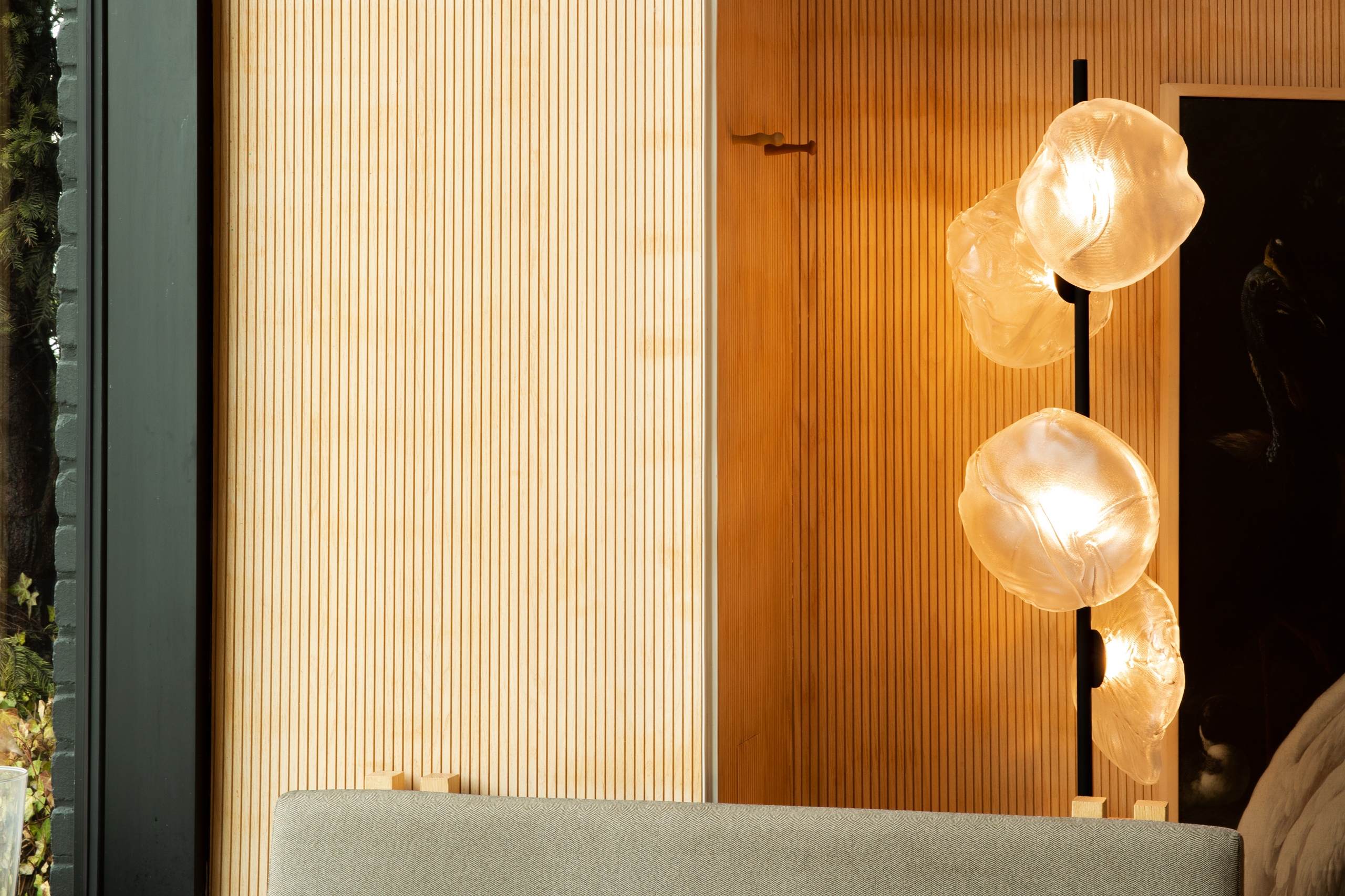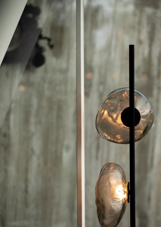 73 Торшер Stem Bocci73 Stem, разработанный Омером Арбелем для Bocci, представляет собой торшер с трубчатой структурой и круглым латунным основанием, доступный в двух различных вариантах отделки: латунный или матовый черный. Рассеиватели изготовлены из дутого стекла со светодиодным источником света. Вынос 73 доступен в различных версиях и размерах.