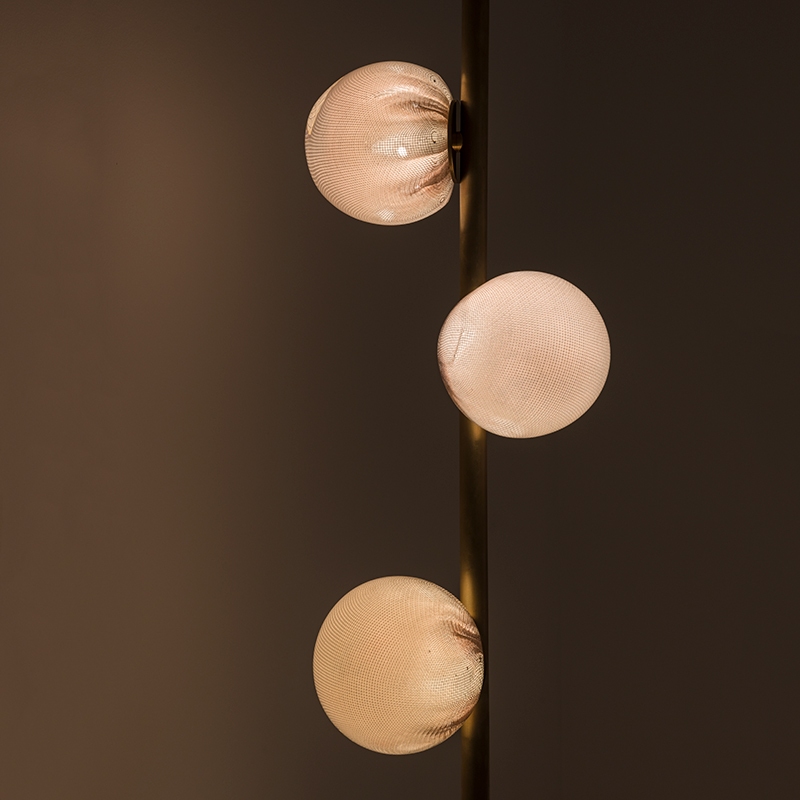 84 Stem Торшер Bocci84 Stem, разработанный Омером Арбелем для Bocci, представляет собой торшер с трубчатой структурой и круглым латунным основанием, доступный в двух различных вариантах отделки: латунный или матовый черный. Рассеиватели изготовлены из дутого стекла со светодиодным источником света. Вынос 84 доступен в различных версиях и размерах.