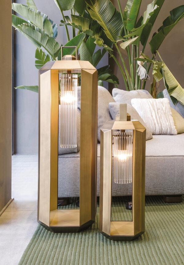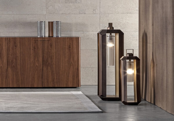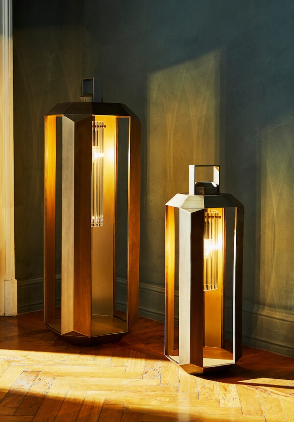 Cube Contardi LanternCube, разработанный Массимилиано Ригги, представляет собой фонарь с внешней структурой из композитного материала, отделанного бронзой с использованием новых техник окраски металлическими порошками. Внутренняя часть фонаря изготовлена из металла, окрашенного в золотой цвет, с ребристым рассеивателем из плексигласа и оснащена источником света со светодиодным цоколем E27 и педальной системой регулирования яркости. Куб доступен в разных размерах.