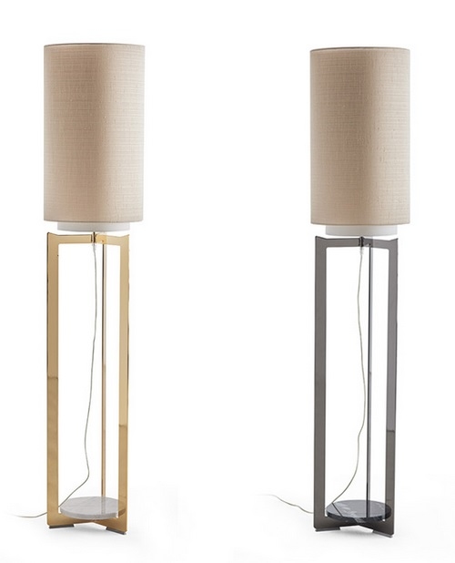 Торшер Toni DemaToni, разработанный А. Бимби для Dema, представляет собой торшер, изготовленный из металлической конструкции, вырезанной лазером, с противоскользящим покрытием из формованного термопластического материала. Основание с мраморной опорой. Внутренний абажур из льняного полотна на ПВХ, внешний из шелкового шантунга. Доступен в различных вариантах отделки.
