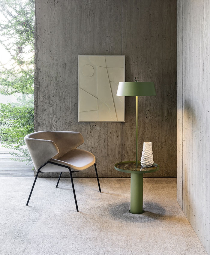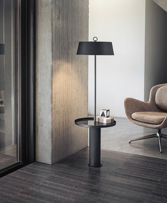 Торшер Totò RiflessiTotò, разработанный Riflessi, представляет собой торшер из окрашенного металла с опорным поддоном, соответствующим структуре, или из керамики. Электрический кабель обтянут черной тканью. Доступен в версии с системой или без нее и регулируемыми лампами.