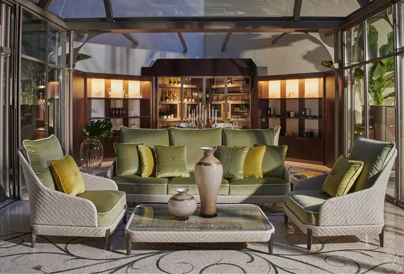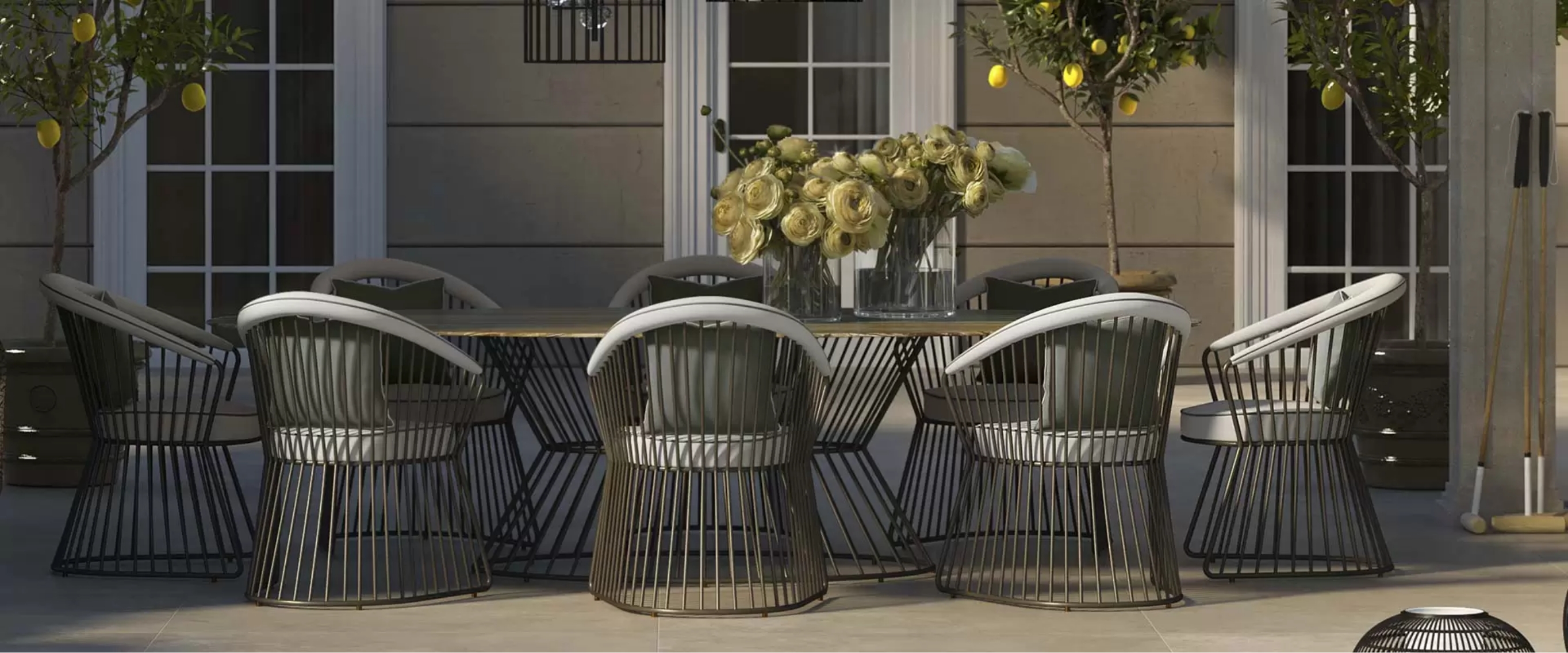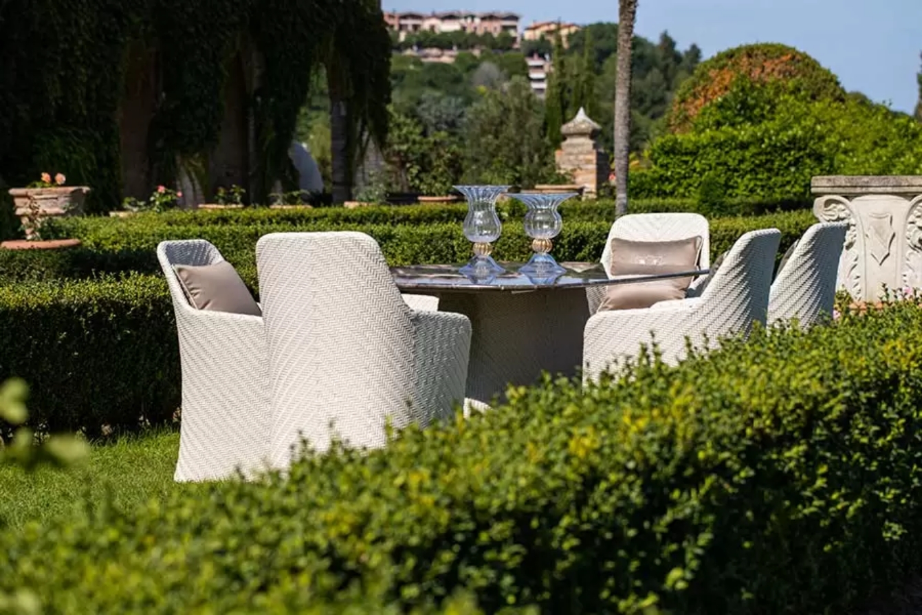 Вдохновленная рационалистическими и современными идеями, Kenzia представляет собой серию предметов с линейным, но изысканным дизайном. Верная концепции total look, сопровождающей каждое творение Samuele Mazza, линия Kenzia предлагает множество элементов и аксессуаров для комплексного оформления открытого пространства. Стиль Kenzia отличается простотой. Линии здесь базовые: прямые подлокотники соединяются со спинкой в единую конструкцию, дополненную удобной подушкой. Высокая спинка и богатые подушки создают камерную зону отдыха, где можно расслабиться и приятно провести время на открытом воздухе. Модульная конструкция допускает различные комбинации, включая Г-образную компоновку дивана. Обеденная версия Kenzia включает элегантный стол-мост с чрезвычайно утонченным исполнением из плетеного синтетического ротанга, создающего плотную фактуру и эффектную игру материала. Основание стола имеет трапециевидную форму, на которую можно устанавливать различные типы столешниц. Это динамичная, продуманная и насыщенная программа предметов для открытого воздуха с тонкими деталями, где ремесленное мастерство и ручная работа лежат в основе каждого изделия.