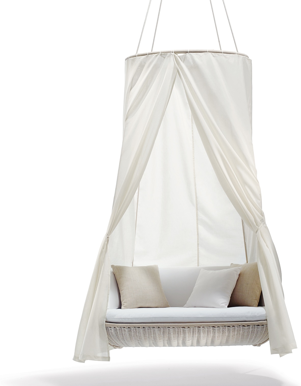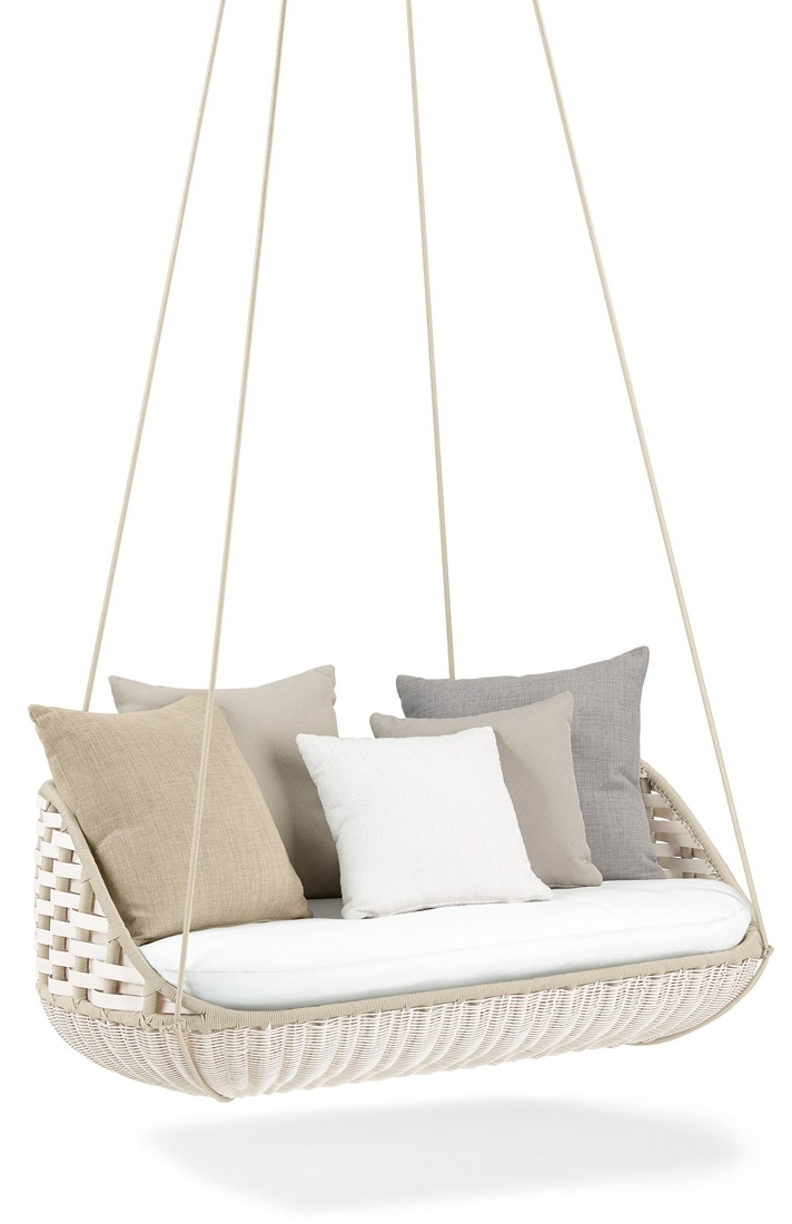 2-местный диван SwingUs Dedon Подвесной 2-местный диван SwingUs, разработанный Даниэлем Пузе для компании Dedon, предназначен для двух человек, но достаточно просторен, чтобы один пользователь мог вытянуться в положении лежа. Этот удобный двухместный диван имеет спинку с запахом, которая окутывает пользователей. 2-местная подвеска Dedon SwingUs доступна в двух цветах волокна: меловом и натуральном. В цену не включена стоимость декоративных подушек.
