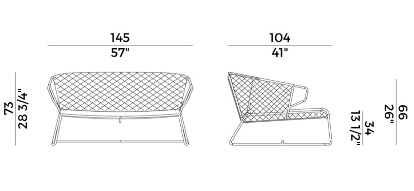 Vela Potocco DivanoVela, разработанный Ханнесом Веттштайном для Potocco, представляет собой уличный диван, полностью выполненный из окрашенного металла с различной отделкой. Сиденье и спинка покрыты веревочной тканью из пеньки или ПВХ разных цветов.