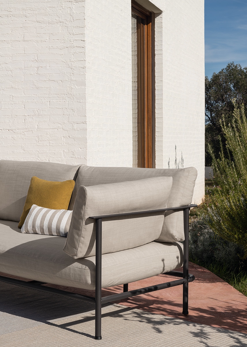 Диван Elodie Outdoor PotoccoElodie Outdoor, разработанный Кьярой Андреатти для Potocco, представляет собой уличный диван с тисненой окрашенной трубчатой металлической структурой в различных вариантах отделки. Сиденье и спинка наполнены огнеупорным пенополиуретаном и обтянуты различными тканями.