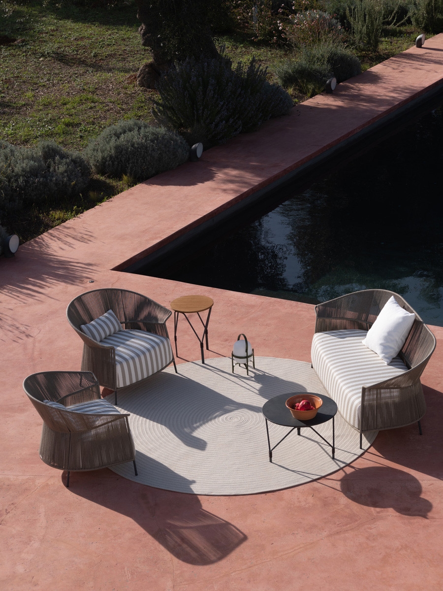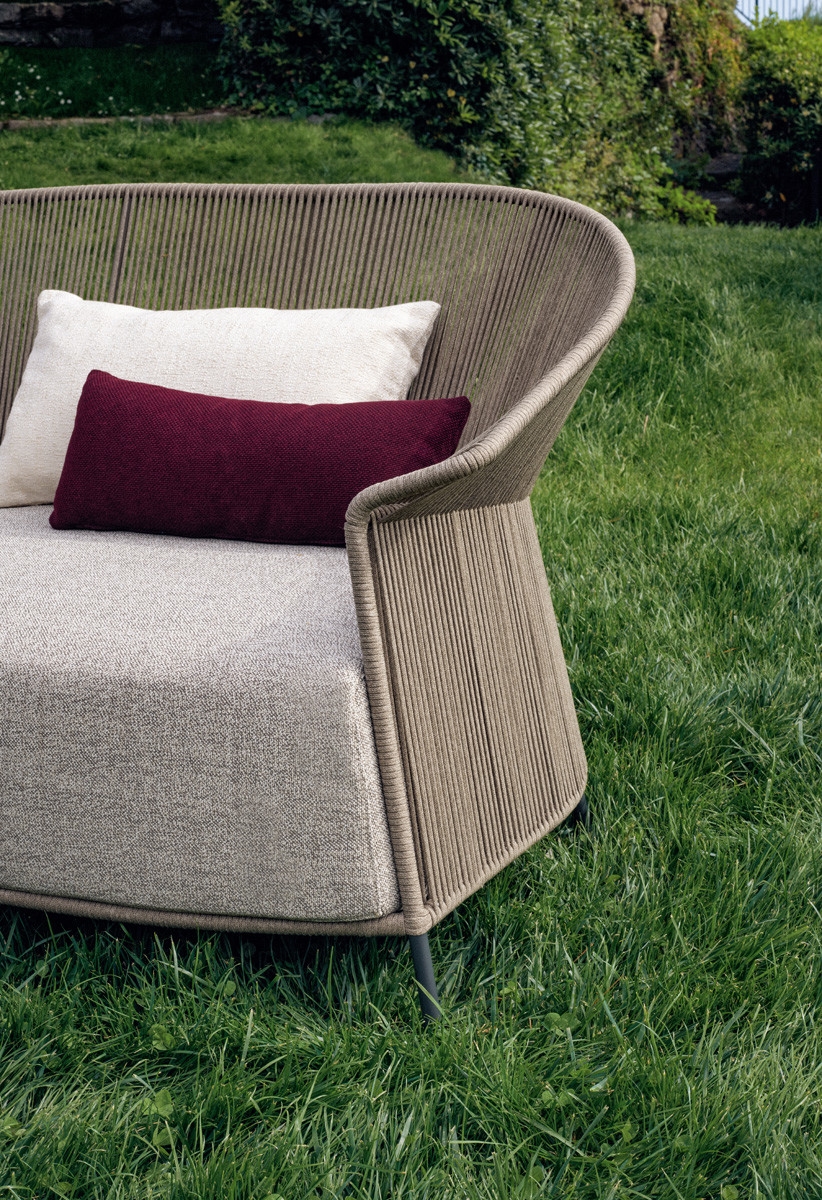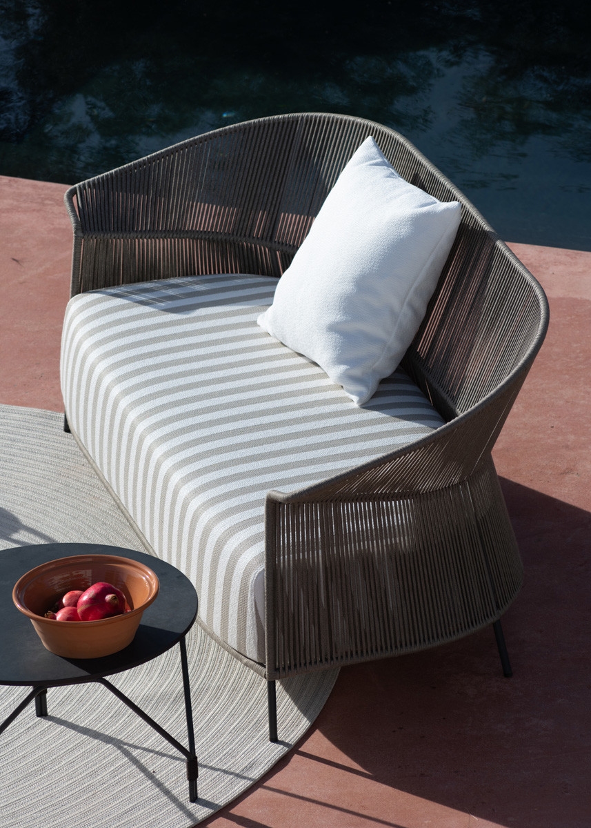 Диван Ola PotoccoOla, разработанный Радиче Орландини для Potocco, представляет собой структурированный садовый диван из окрашенного металла с различной отделкой. Сиденье и спинка обтянуты верёвкой Fly толщиной 8 мм. Обивка подушек из разных тканей.