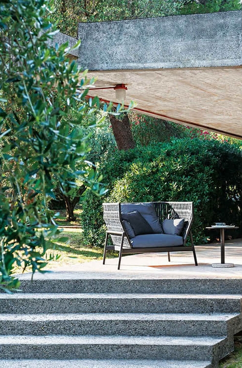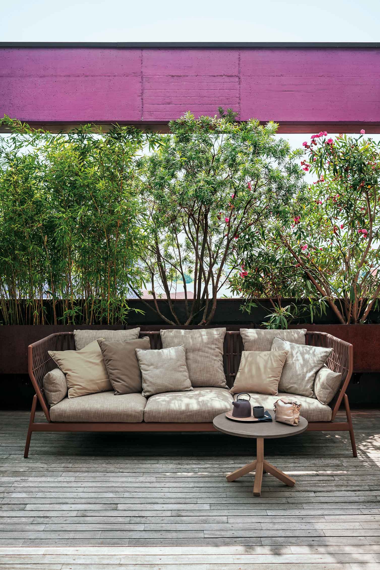 Диван Piper Belt RodaPiper, разработанный Родольфо Дордони для Roda, представляет собой диван из алюминия с порошковым покрытием и спинкой из плетеного ремня. Он доступен в различных вариантах отделки и размерах.
