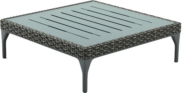 Журнальный столик Mu DedonMU, разработанный Тоаном Нгуеном для Dedon, представляет собой табурет из алюминия с порошковым покрытием, цвет которого аналогичен цвету волокна, со столешницей из стекла или HPL. Доступен в различных вариантах отделки и в 2 размерах.