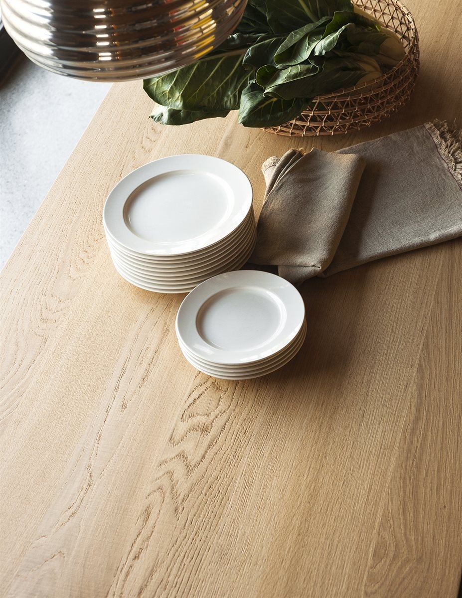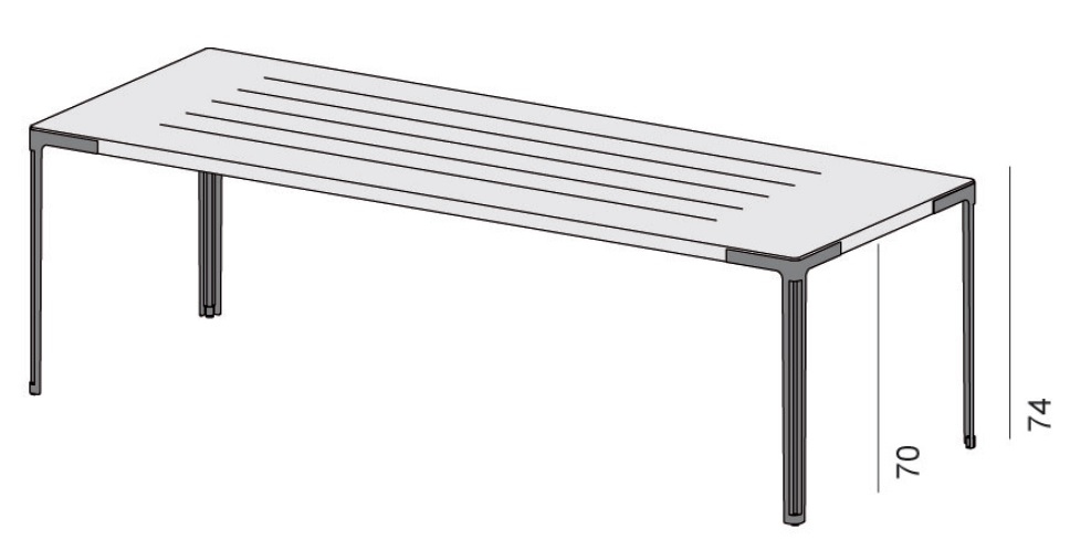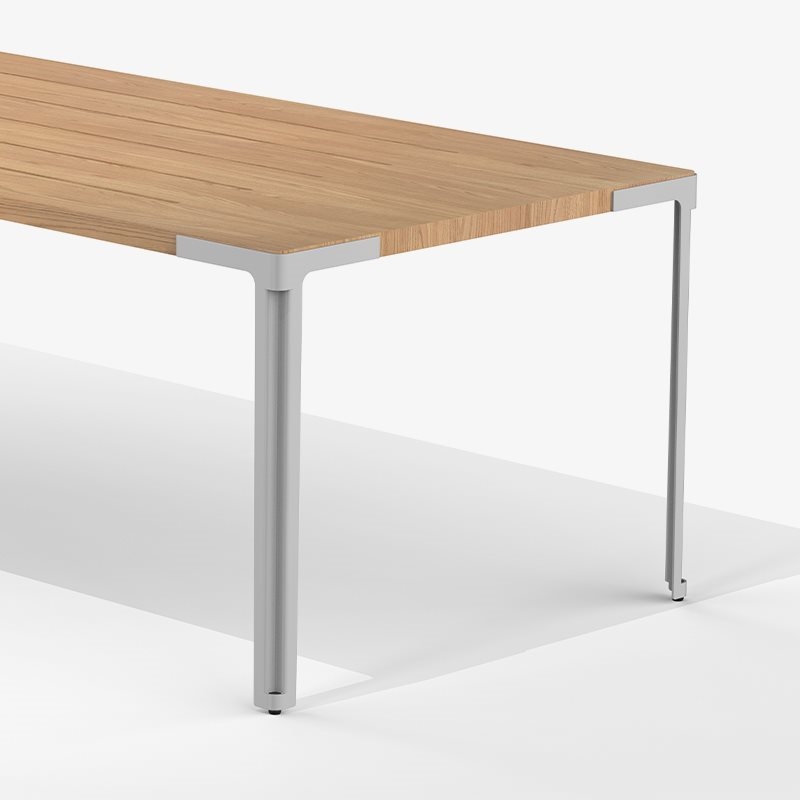Fan Desalto TableFan, разработанный Пьеро Лиссони для Desalto, представляет собой стол с ножками из лакированной нержавеющей стали, доступными в различных вариантах отделки, со столешницей из цельных планок из ироко, обработанных специальным маслом для использования на открытом воздухе. Стол также доступен в разных размерах.