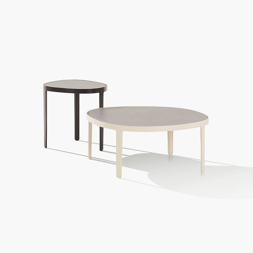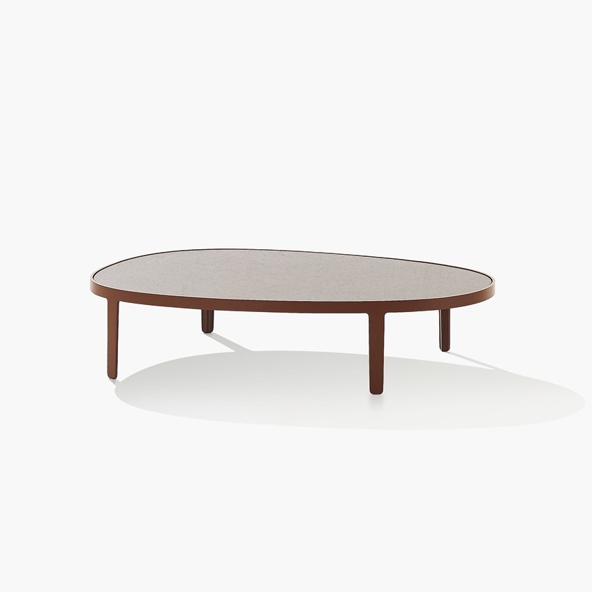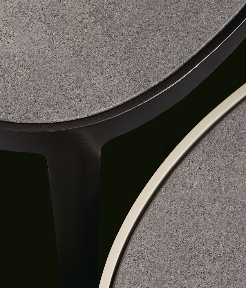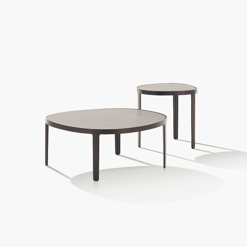 Журнальный столик Mad Out PoliformMad Out, разработанный Марселем Вандерсом для Poliform, представляет собой журнальный столик со структурой из матового окрашенного алюминия и столешницей из лавового камня, также доступный с декором из литого стекла.