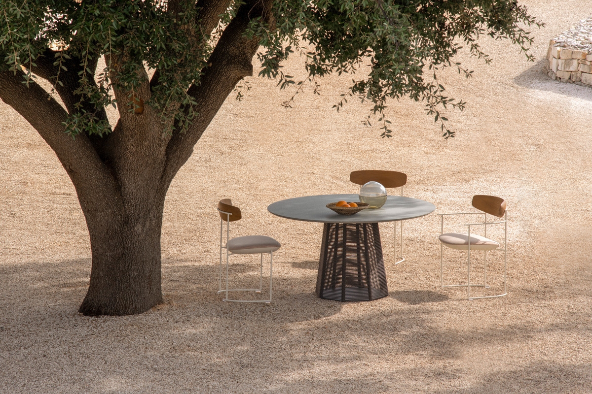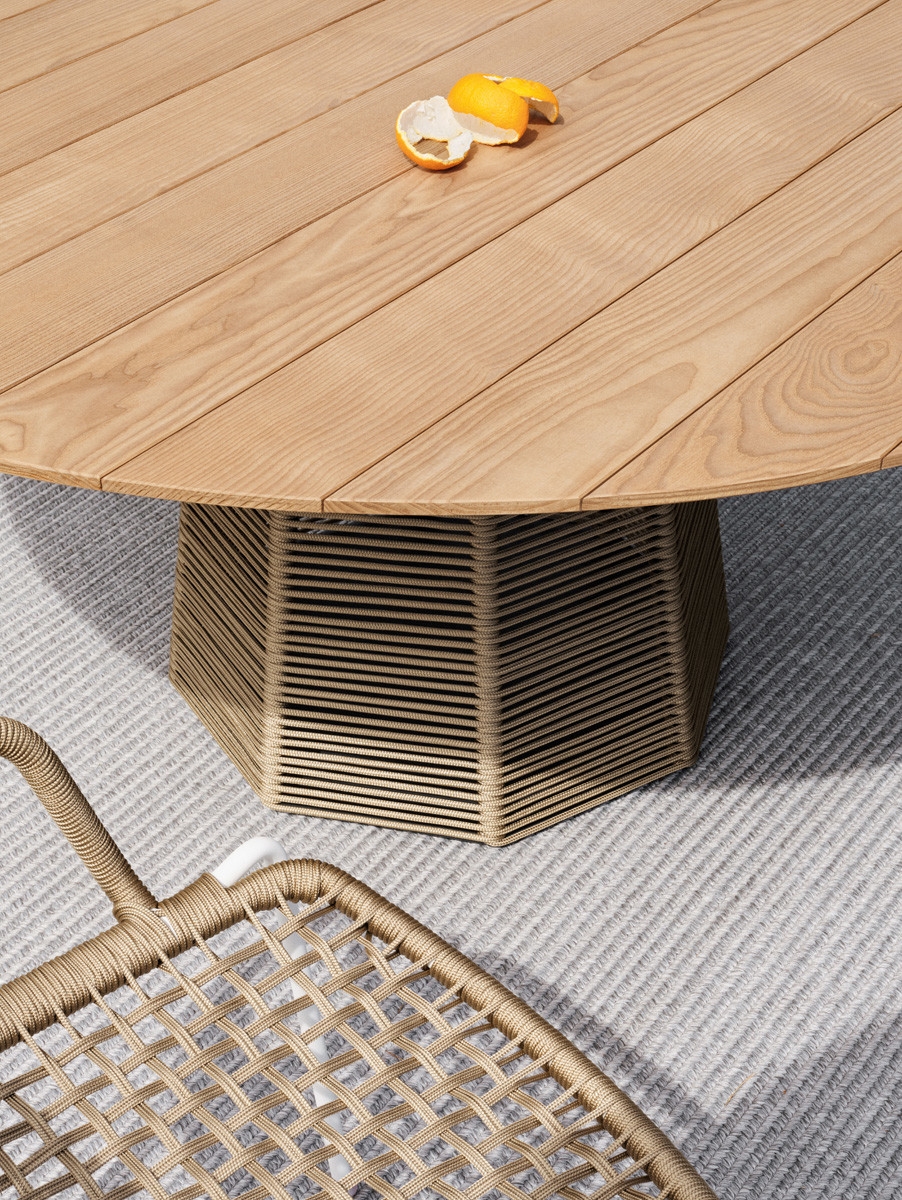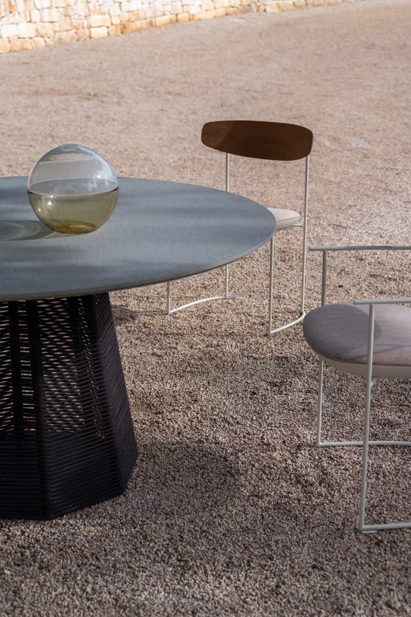 Стол Sophie PotoccoSophie, разработанный Кьярой Андреатти для Potocco, представляет собой уличный стол с восьмиугольным основанием из стали, окрашенной эпоксидными порошками, покрытой веревкой, со столешницей из водонепроницаемого ясеня или натурального камня.