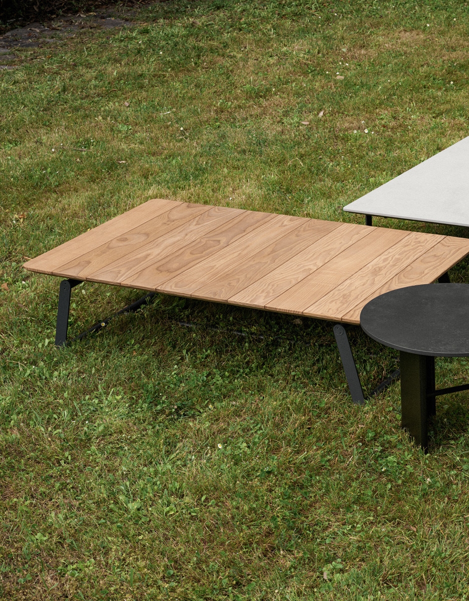 Журнальный столик Soul Potocco Soul, разработанный Габриэле и Оскаром Буратти для Potocco, представляет собой уличный журнальный столик с основанием из тисненого металла, окрашенного в антрацит, и столешницей из ясеня, керамогранита с черным оксидом или натурального камня. Доступен в двух размерах.