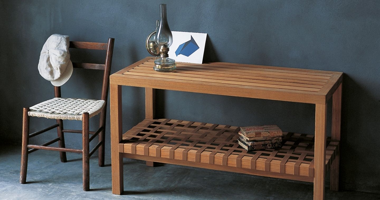 Network Roda ConsolleNetwork, разработанная Родольфо Дордони для Roda, представляет собой уличную консоль из тикового дерева с нижней полкой, изготовленной из акриловых или полиэфирных ремней.