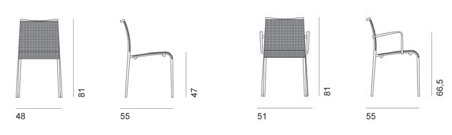 Стул Desalto Sand Light OutdoorSand Light Outdoor, разработанный Pocci e Dondoli для Desalto, представляет собой штабелируемый стул с конструкцией из литого под давлением алюминия. Сиденье и спинка из полиэфирной сетки, покрытой ПВХ (в версии Canatex сетка покрыта ПВХ и коноплей). Доступен в различных вариантах отделки и в версии с подлокотниками или без них.