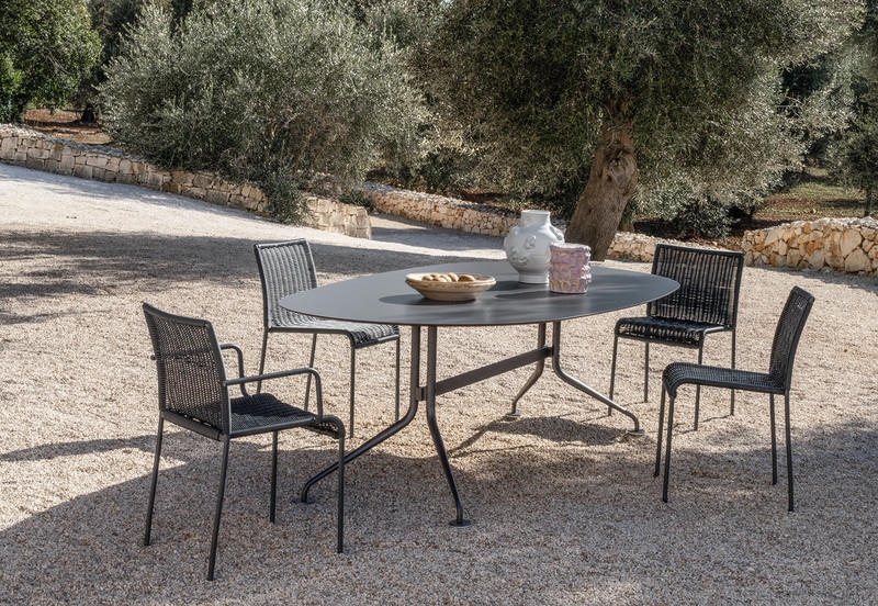 Стул Agra PotoccoAgra, разработанный Энрико Франзолини для Potocco, представляет собой садовый стул, полностью выполненный из окрашенного металла с различной отделкой. Сиденье и спинка покрыты веревочной тканью из ПВХ или синтетического плетения разных цветов.