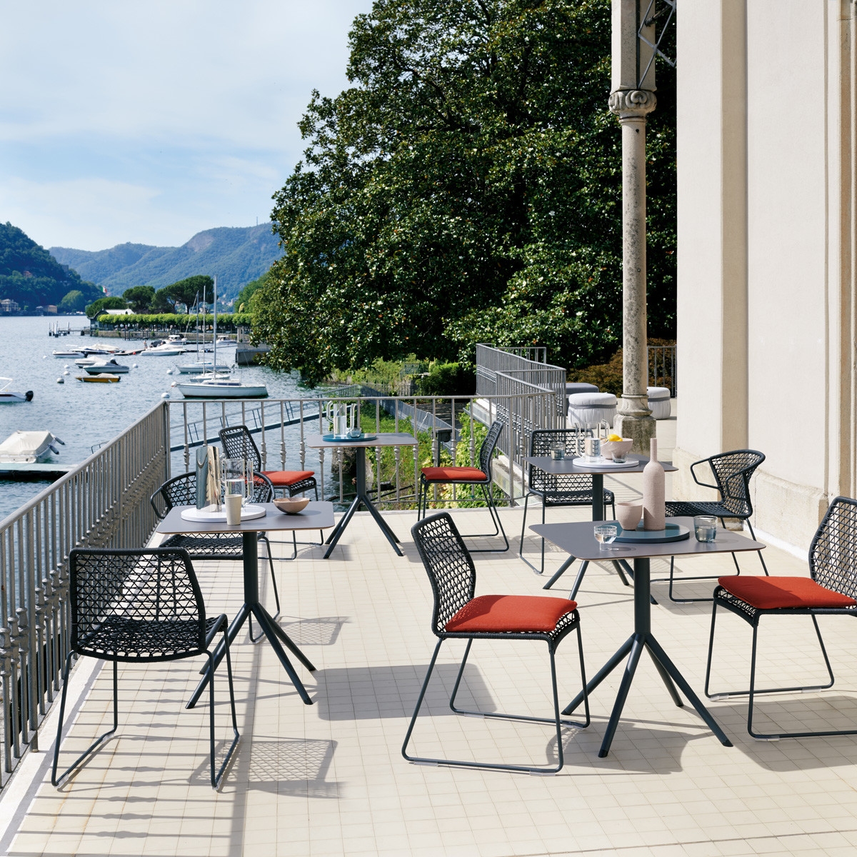 Стул Vela PotoccoVela, разработанный Ханнесом Веттштайном для Potocco, представляет собой уличное кресло, полностью выполненное из окрашенного металла с различной отделкой. Сиденье и спинка покрыты веревочной тканью из пеньки или ПВХ разных цветов.