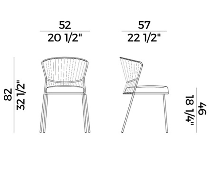 Стул Ola PotoccoOla, разработанный Радиче Орландини для Potocco, представляет собой садовый стул, полностью выполненный из окрашенного металла с различной отделкой. Сиденье и спинка обтянуты верёвкой Fly толщиной 8 мм.