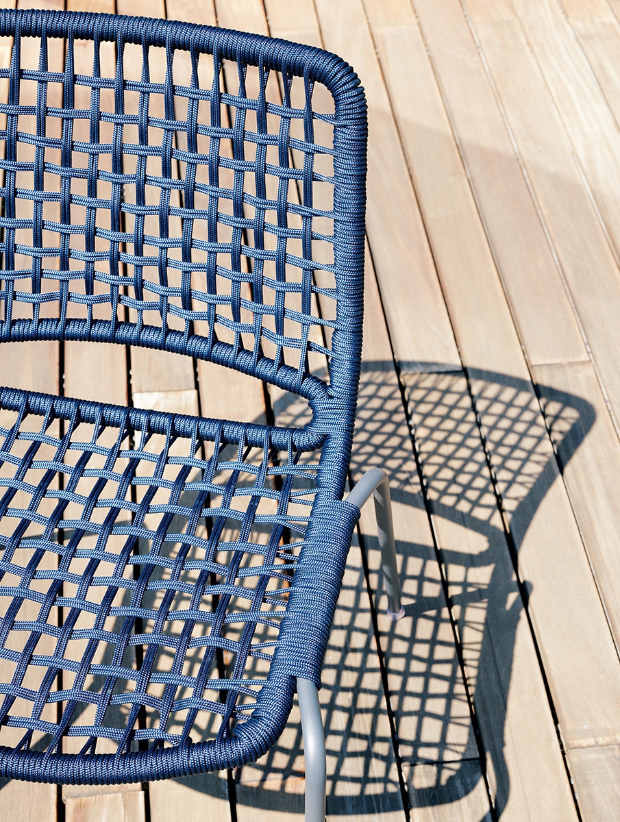 Стул Egao PotoccoEgao, разработанный Тоаном Нгуеном для Potocco, представляет собой уличный стул с ножками из окрашенной нержавеющей стали и плетением из синтетического шнура или веревки цвета мокко.