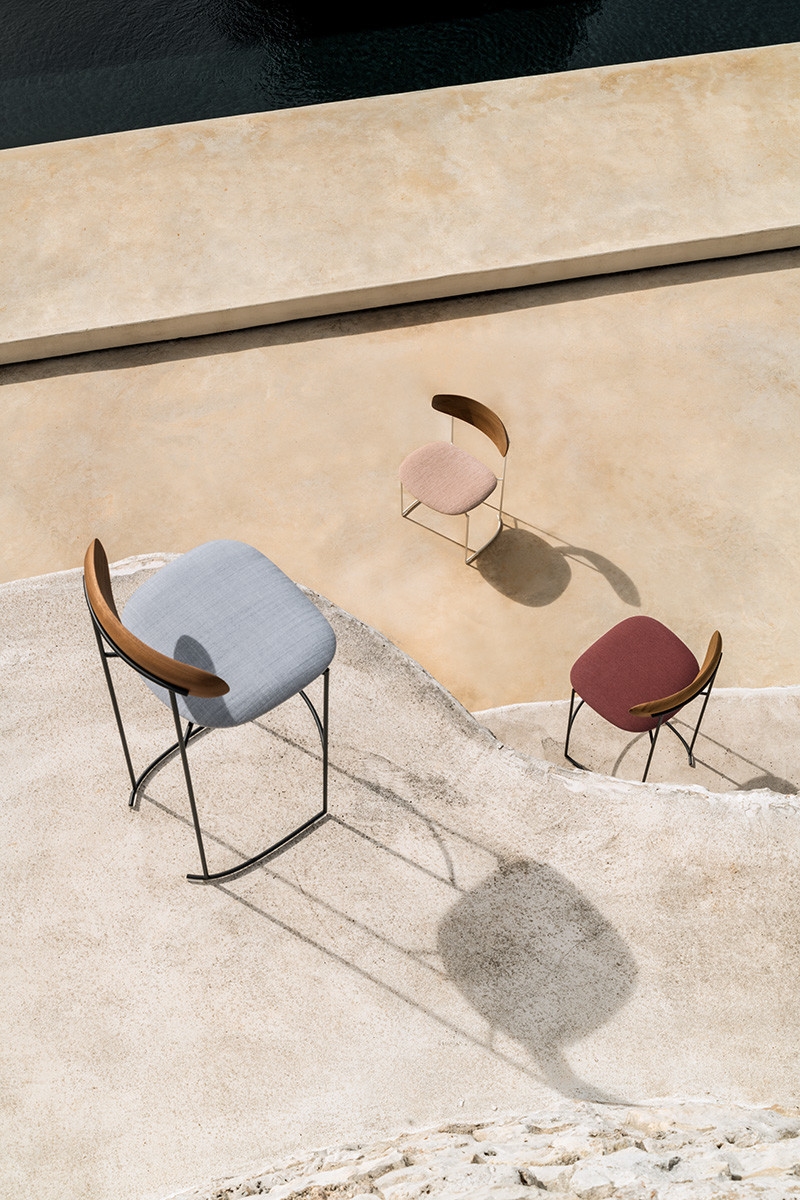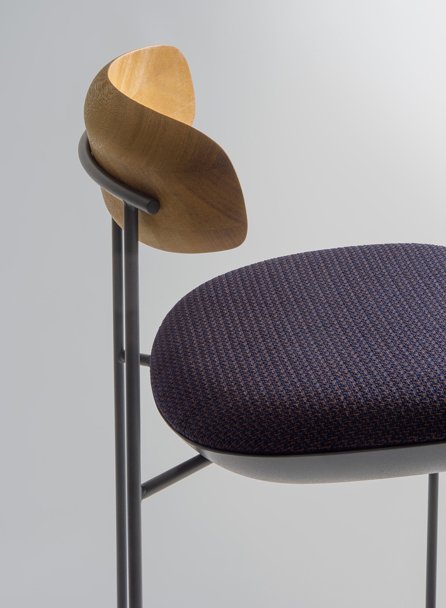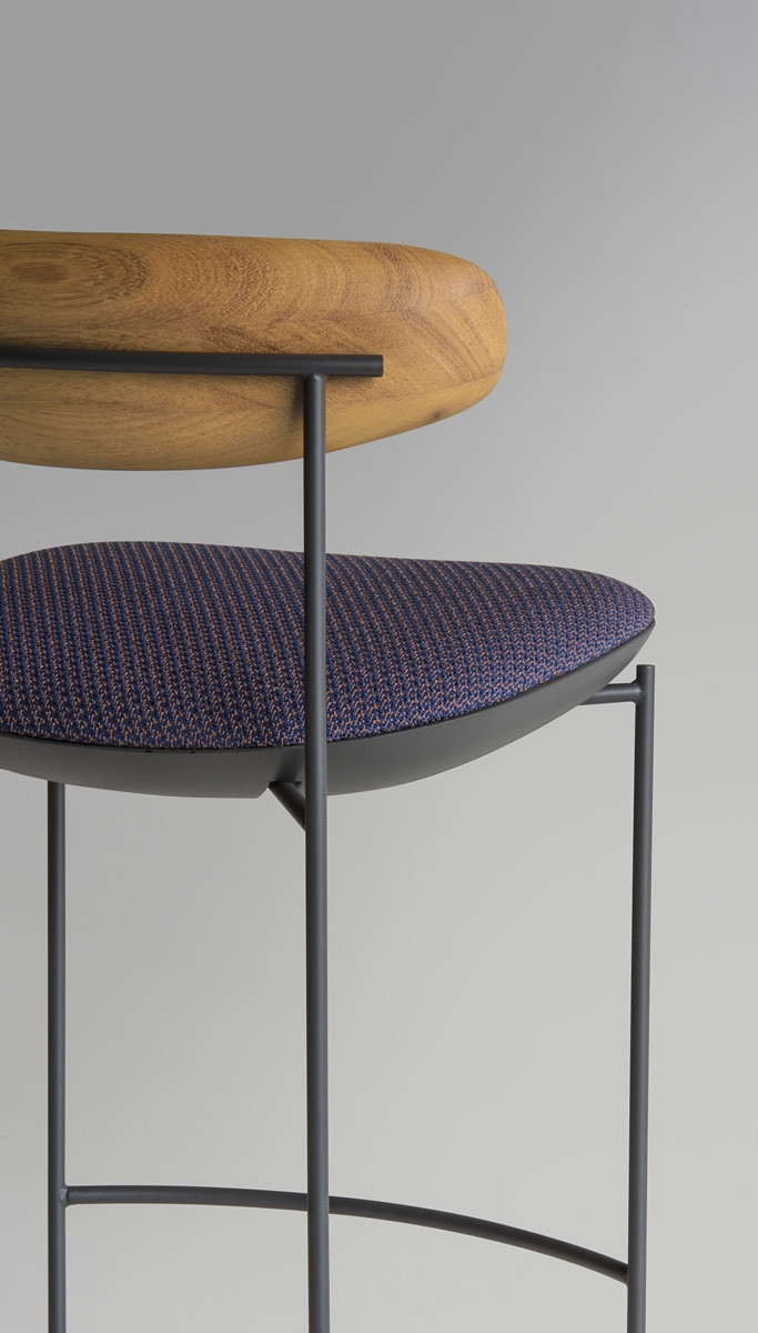 Keel Light Outdoor Potocco ТабуретKeel Light Outdoor, разработанный M + V для Potocco, представляет собой уличный табурет с рельефной окрашенной металлической стержневой структурой, спинкой из массива Iroko и мягким сиденьем из огнеупорного пенополиуретана с покрытиями из различных тканей с жесткой окрашенной оболочкой под акрилом, из того же цвета и мелкого тиснения, что и ствол..