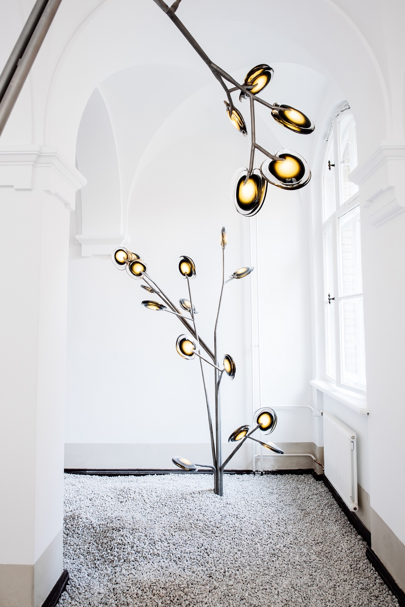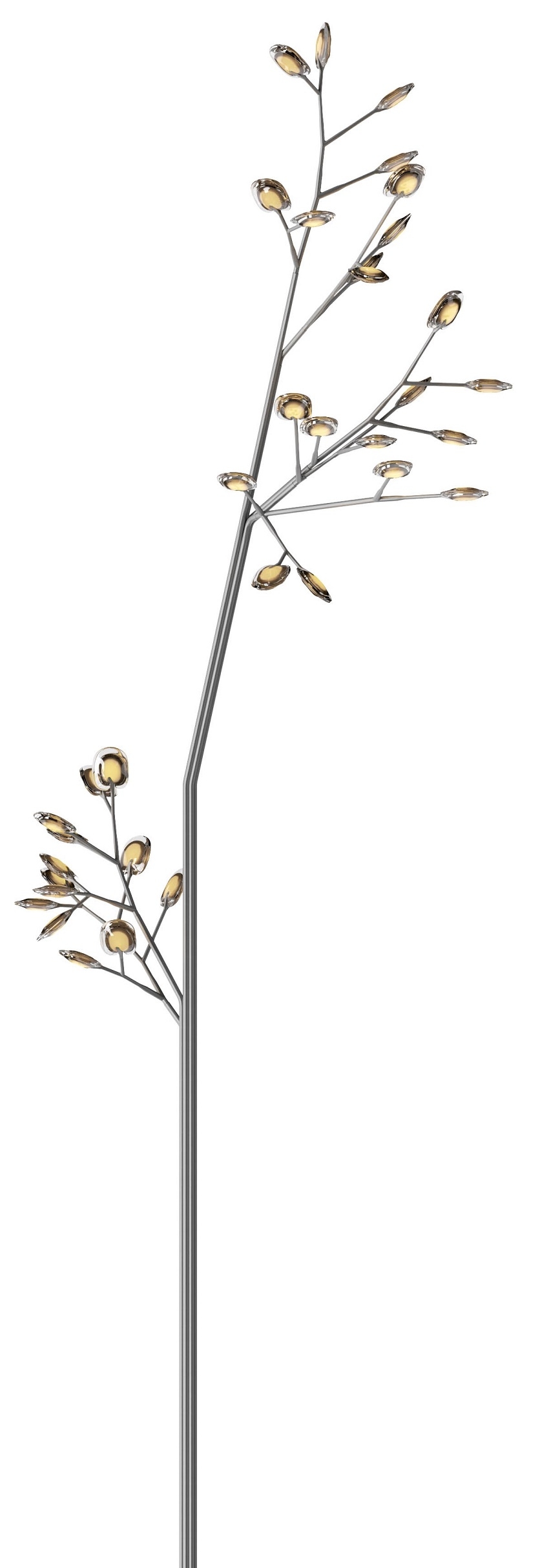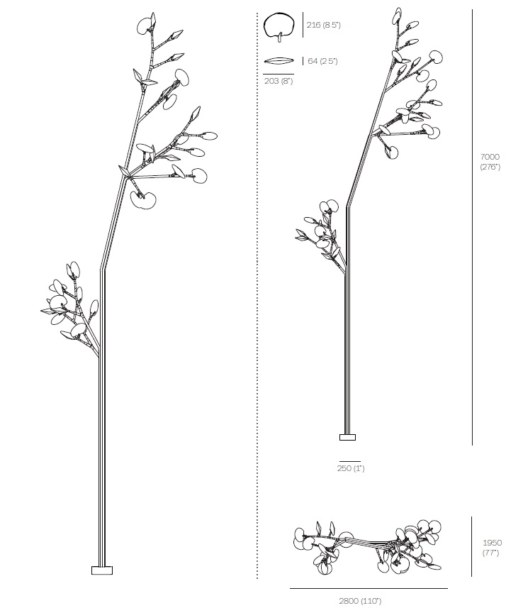 16.35 Aspen Bocci Outdoor Lamp16.35 Aspen из серии 16, разработанной Омером Арбелем для Bocci, — это уличная лампа. Деревянная инсталляция с тридцатью пятью динамиками, модульная конструкция из нержавеющей стали, к которой привиты ветки, имитирующие внешний вид тополя. Ствол имеет высоту 7 метров, 7 ветвей и 35 листьев. Листья доступны в 4 различных вариантах отделки.