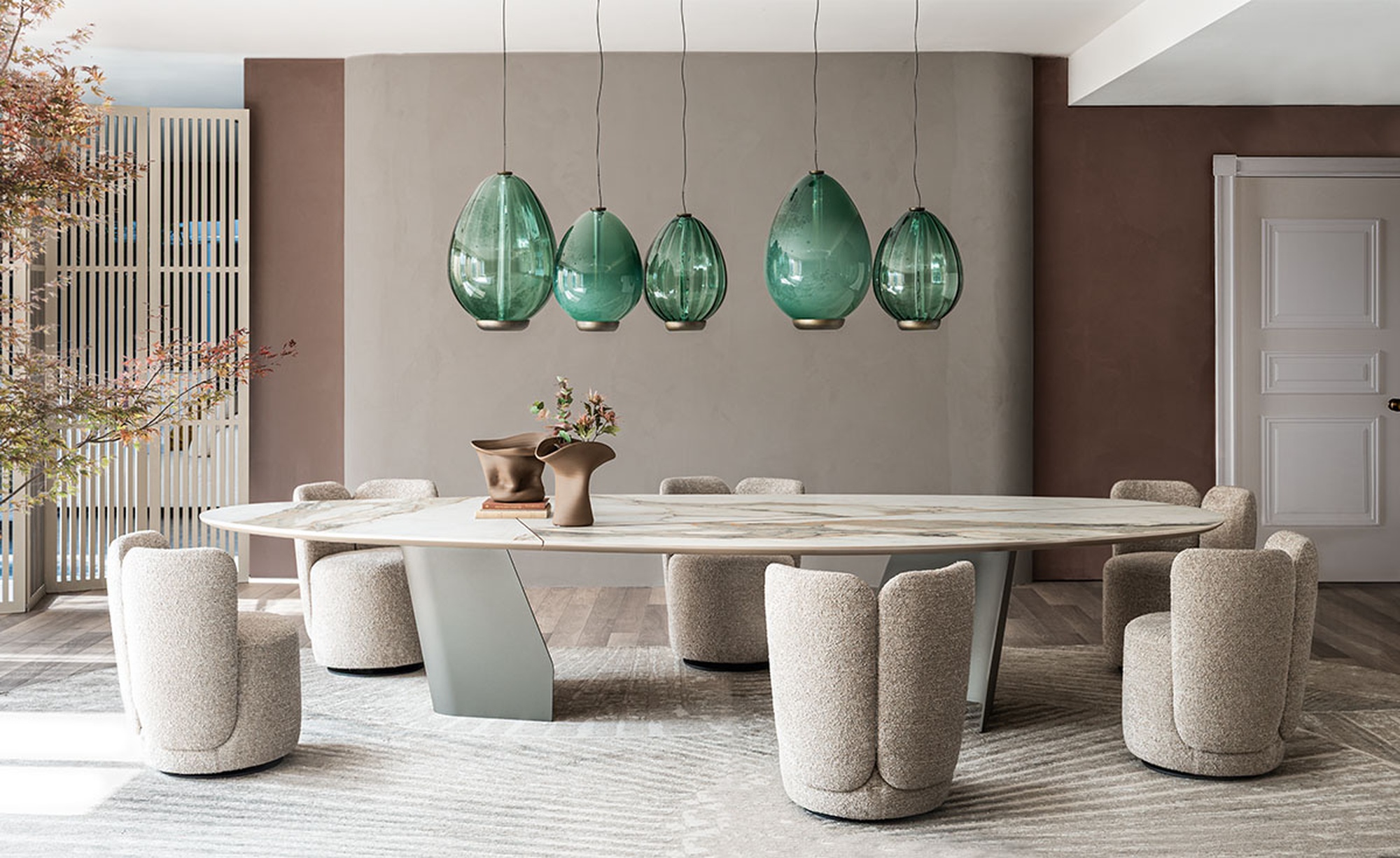 - Металлическая окантовка объединяет элементы, подчёркивает симметрию и добавляет изящные блики.