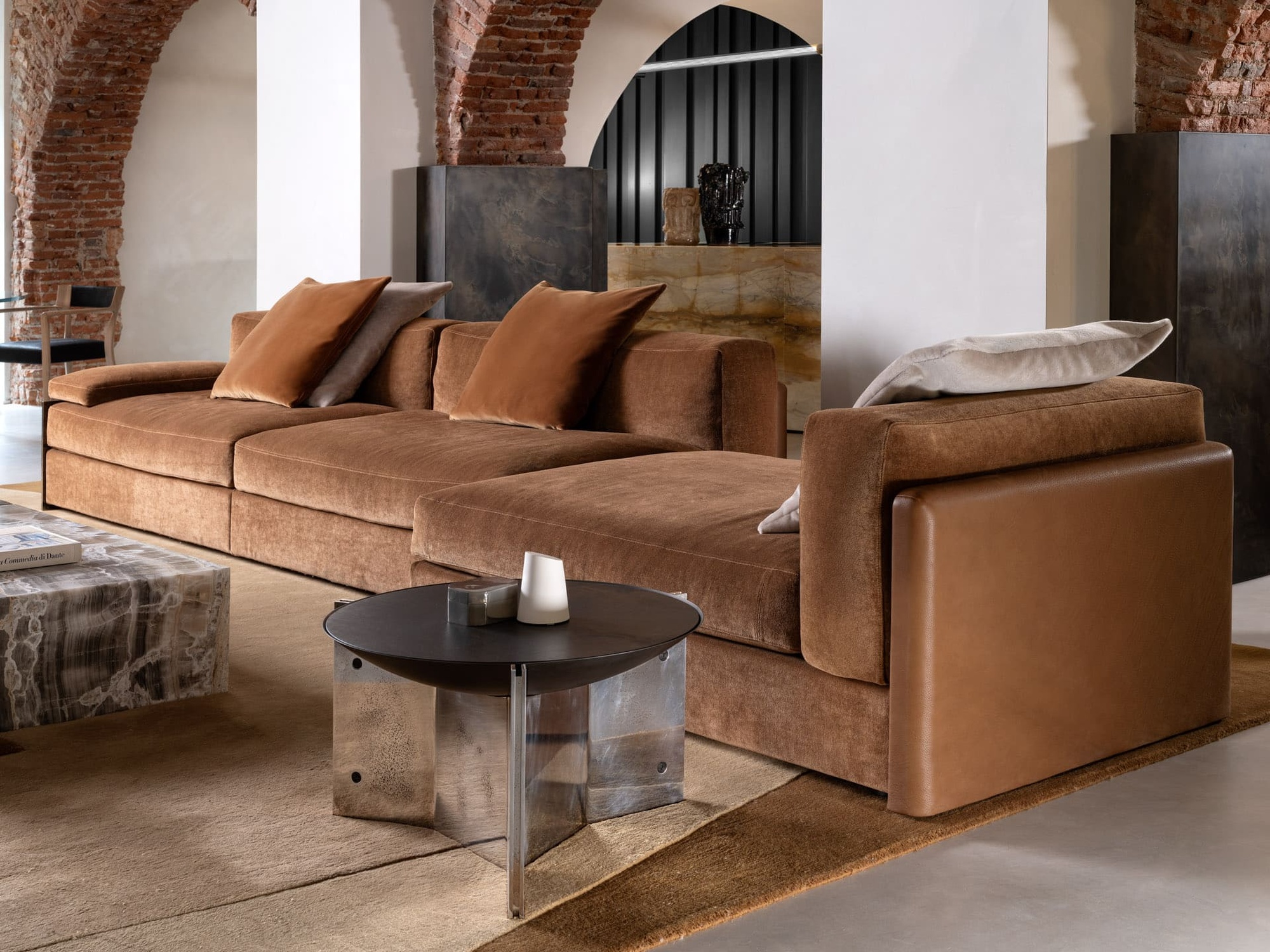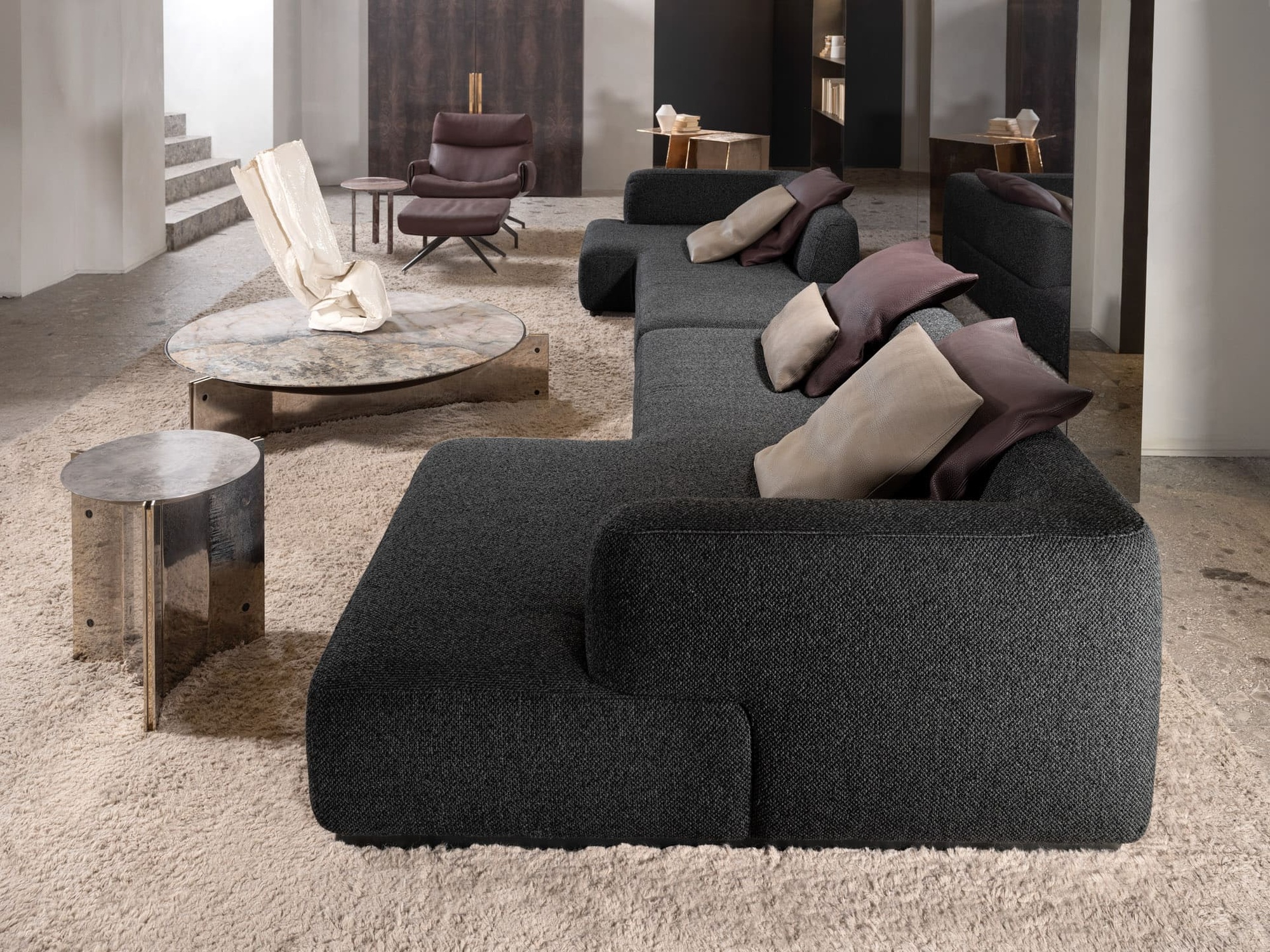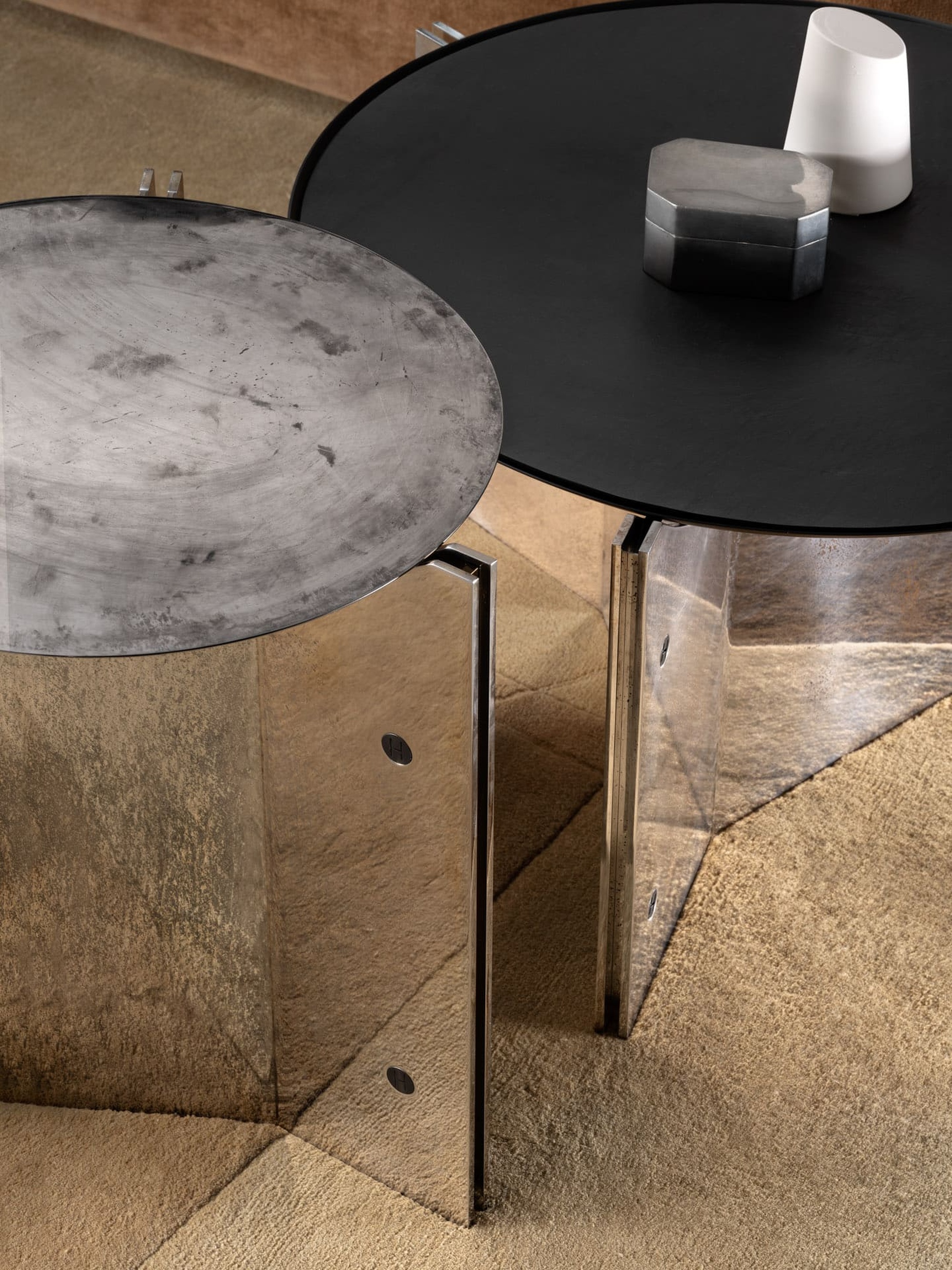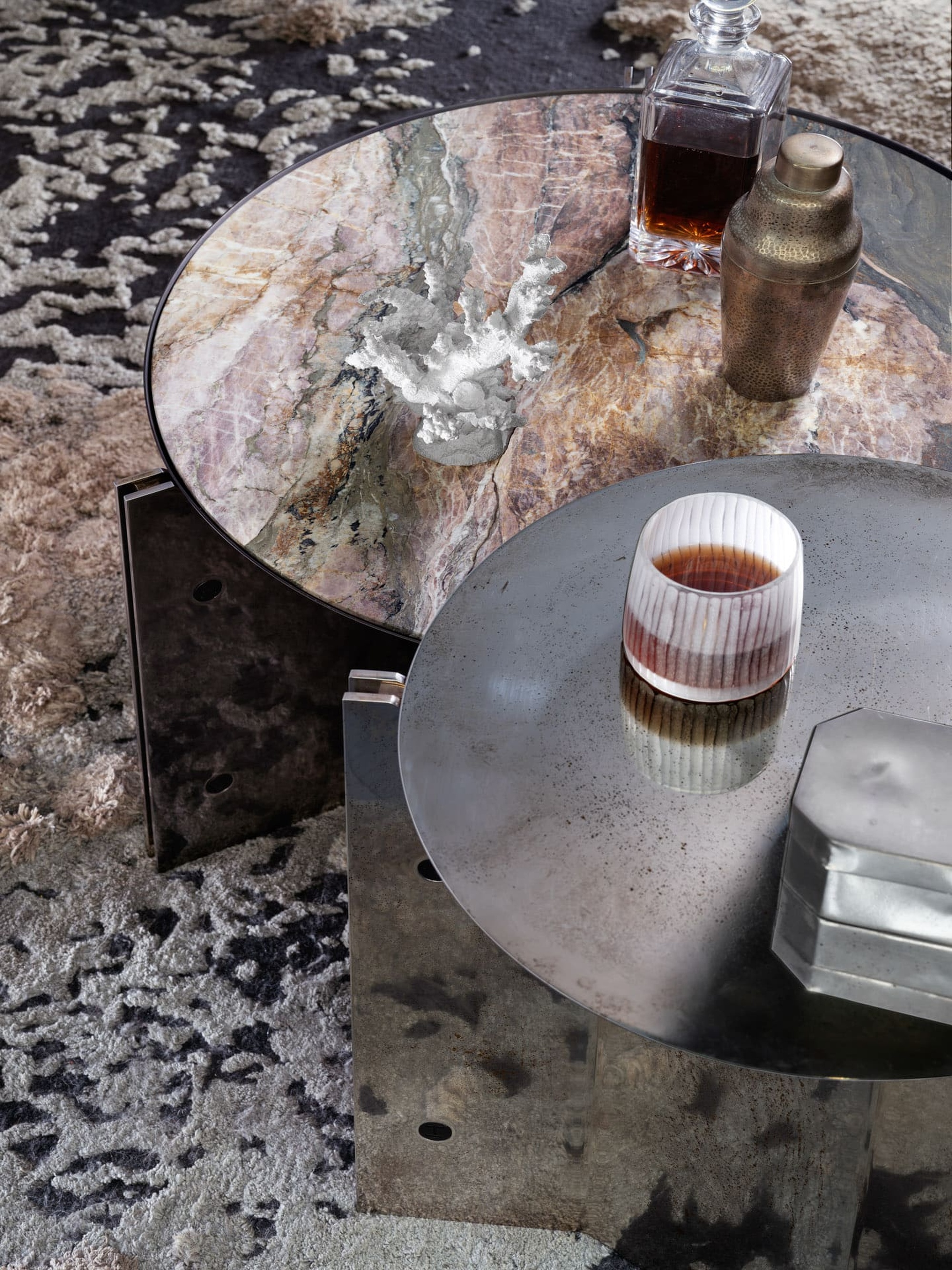 Журнальный стол Muse Tall от Henge — смелое переосмысление классических форм от дизайнера Изабеллы Дженовезе. Модель играет на контрасте: строгие линии ножек сочетаются с органичными формами, а металл вступает в гармоничный диссонанс с камнем, подчёркивая уникальность бренда.