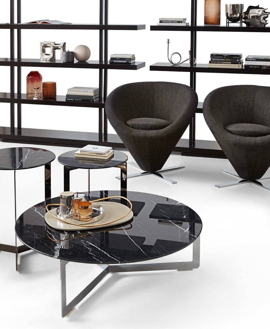 Журнальный столик Malibù DemaMalibù, разработанный Карло Бимби для Dema, представляет собой журнальный столик, изготовленный из металлической конструкции, вырезанной лазером, с нескользящим формованным термопластичным материалом и столешницей из мрамора, кожи или шпона дерева. Доступны в различных вариантах отделки и размерах.