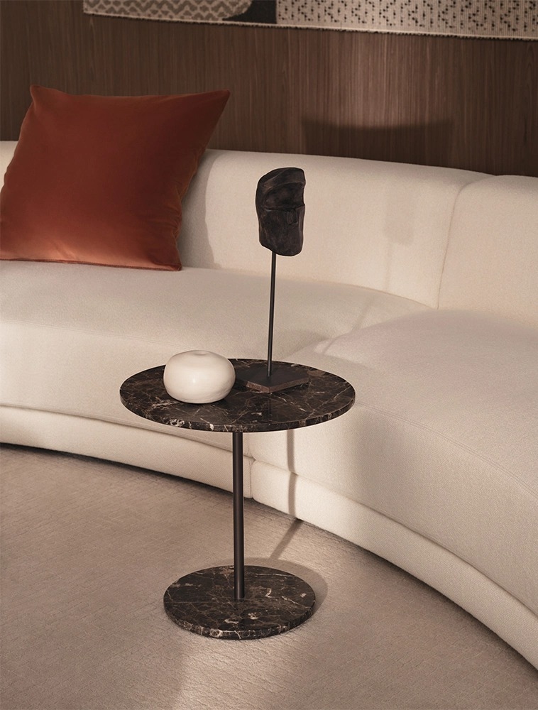 Журнальный столик Talos DePadova Talos, разработанный Кейджи Такеучи для DePadova, представляет собой журнальный столик с основанием и круглой столешницей из мрамора, структурой и вертикальным стержнем из стали, окрашенной в анодно-коричневый цвет. Talos доступен в различных размерах и с мраморной отделкой.