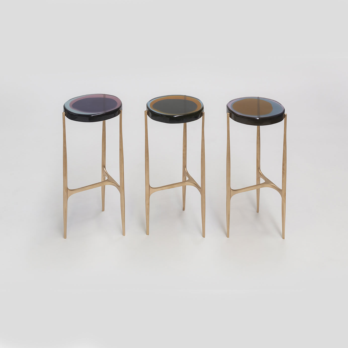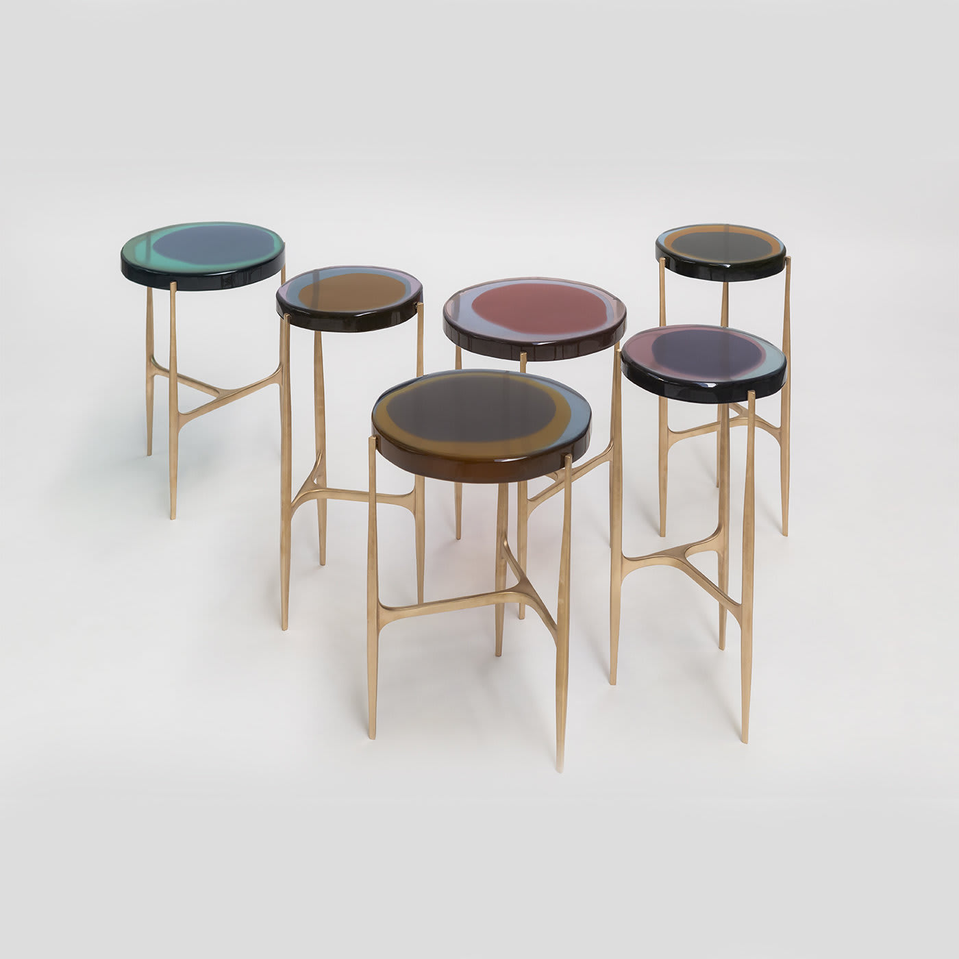 Серию журнальных столиков Agatha оживляет неровная круглая столешница из прозрачной эпоксидной смолы, которая словно играет со светом. Яркие цвета, налитые несколькими слоями, создают глубокий и плавный цвет, заключенный в матовую бронзовую раму. Тщательно изготовленные вручную в нашей мастерской, журнальные столики Agatha доступны в двух размерах, что позволяет создавать разнообразные композиции. Доступны в различных цветах.