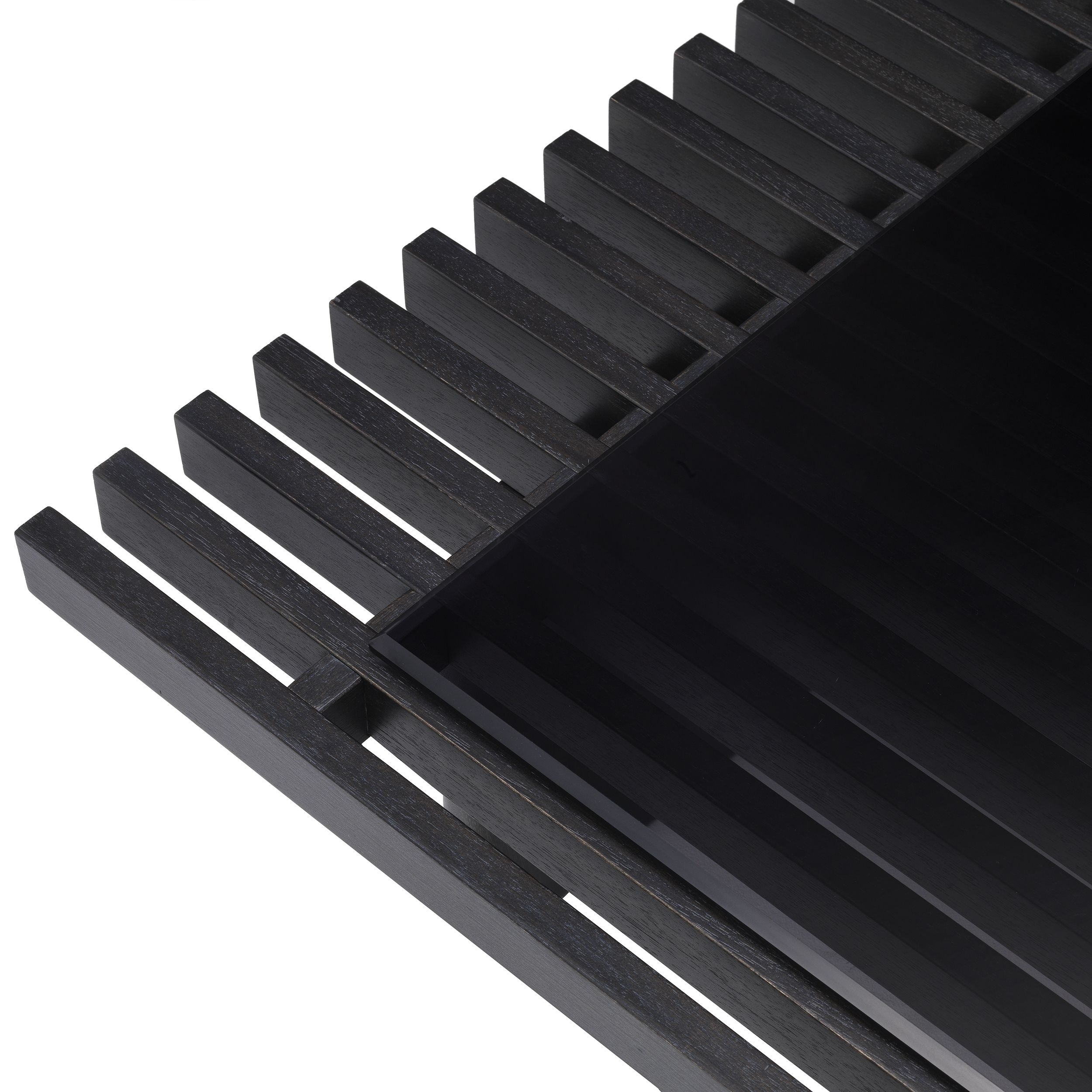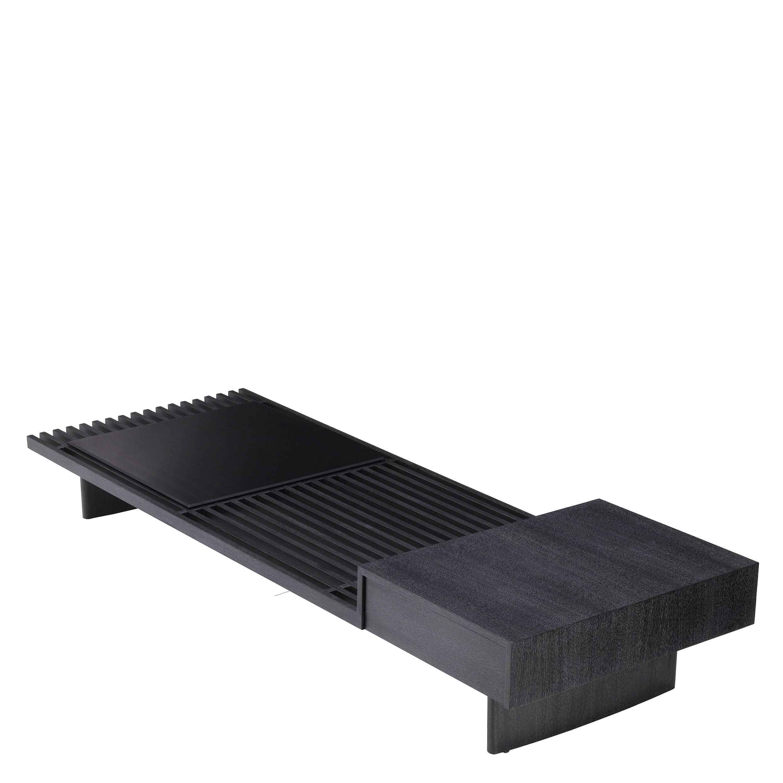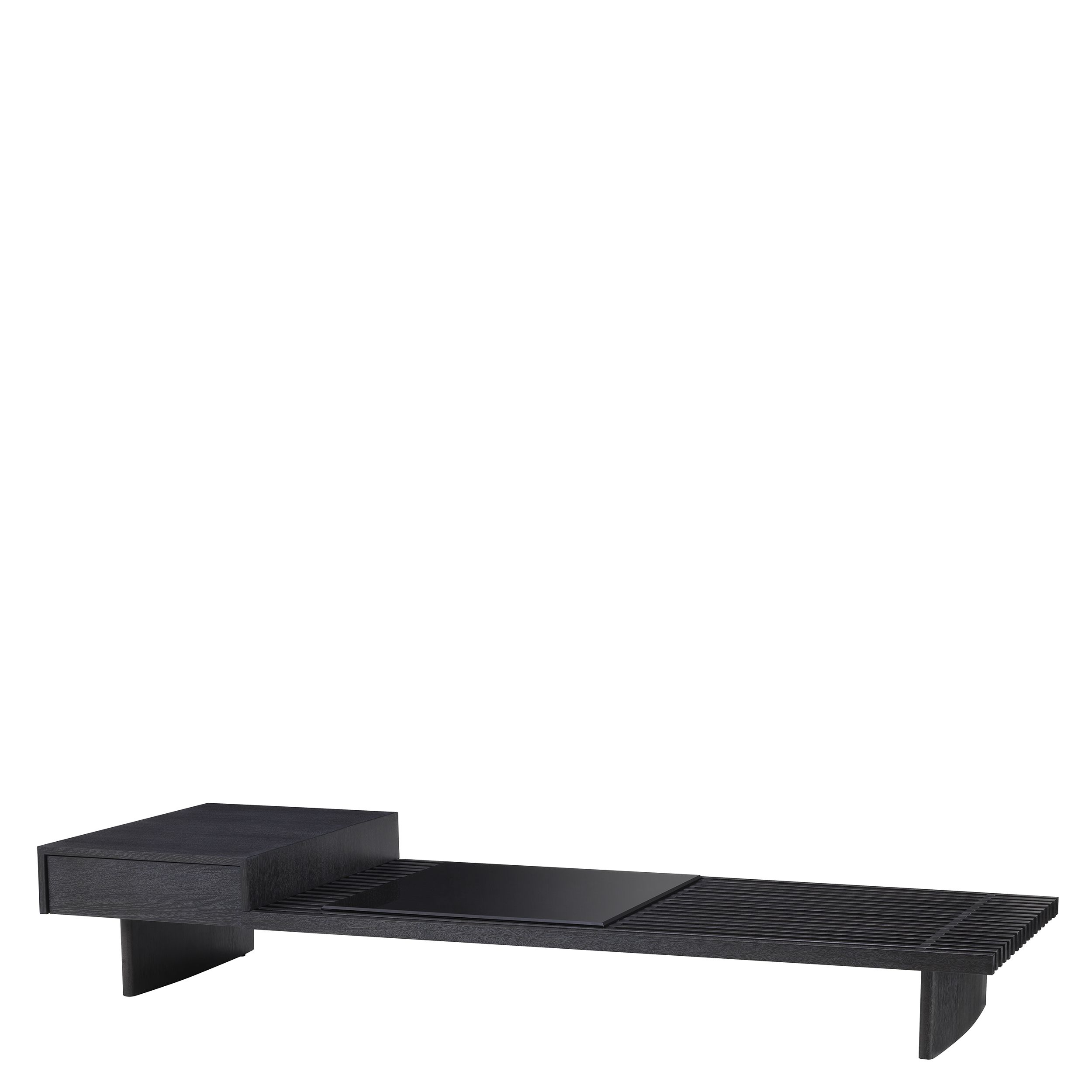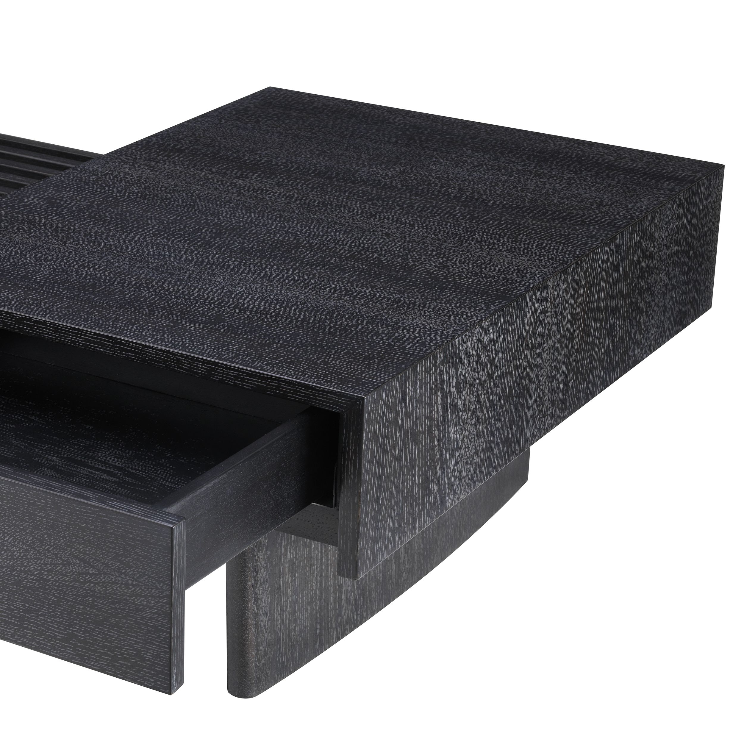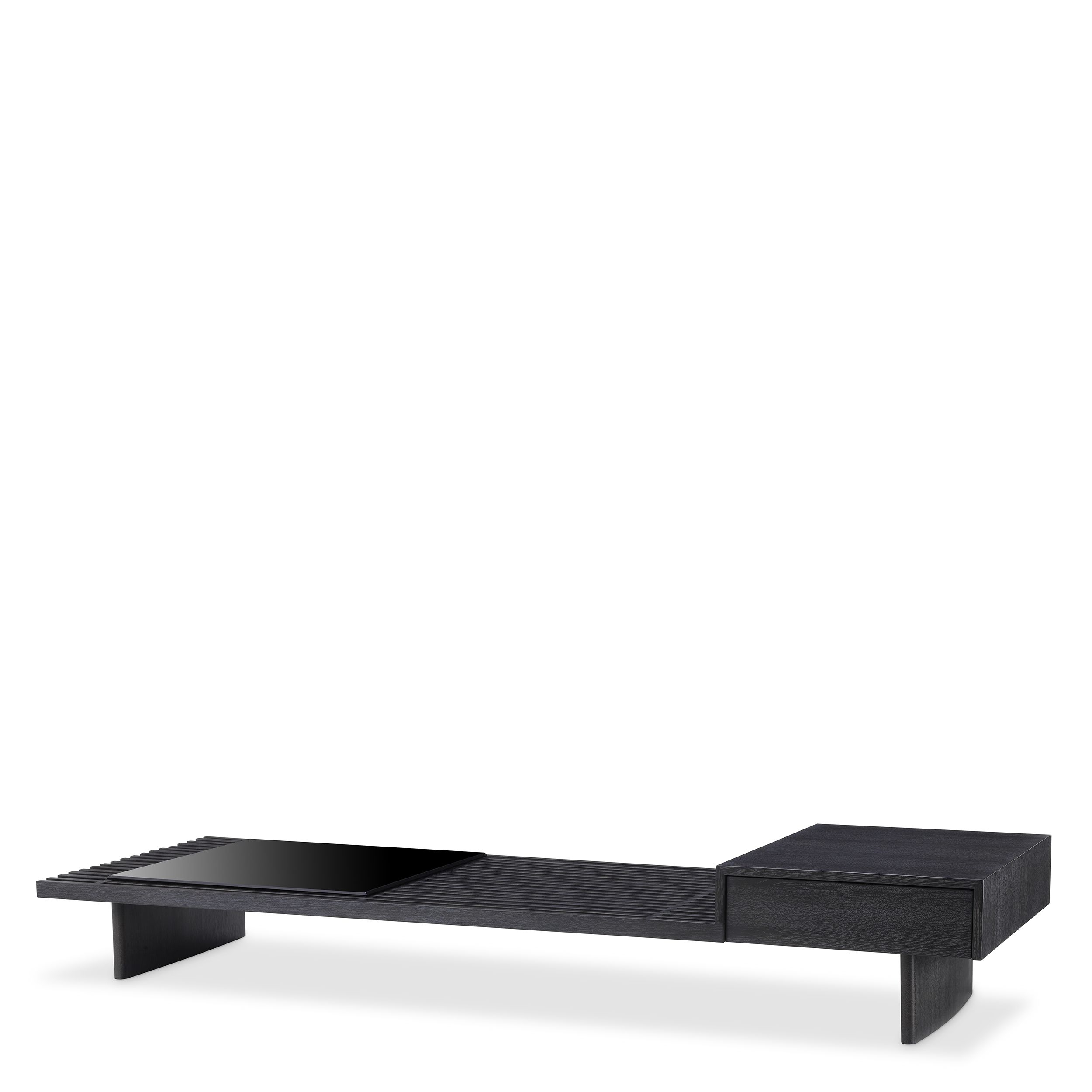 Журнальный столик Crest Eichholtz. Crust, разработанный Eichholtz, представляет собой прямоугольный журнальный столик из шпона угольно-дубового дерева со столешницей из дымчатого стекла и двумя ящиками.