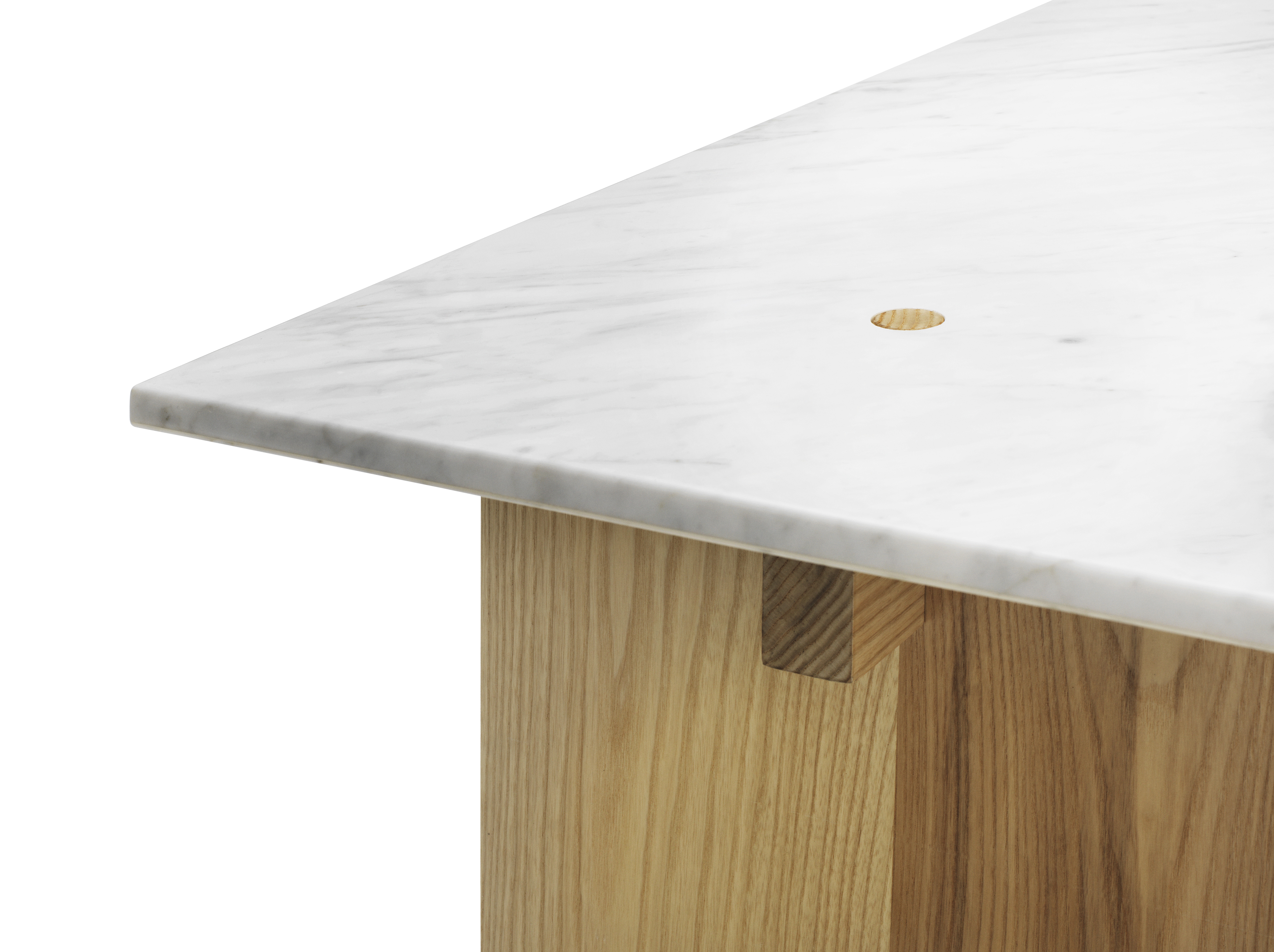Журнальный столик Solid Normann Copenhagen Solid, разработанный Ларсом Беллером Фьетландом для Normann Copenhagen, представляет собой журнальный столик четырехугольной конструкции из лакированного дуба и мраморной столешницей.