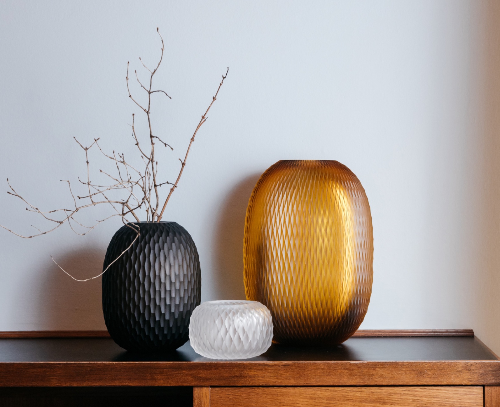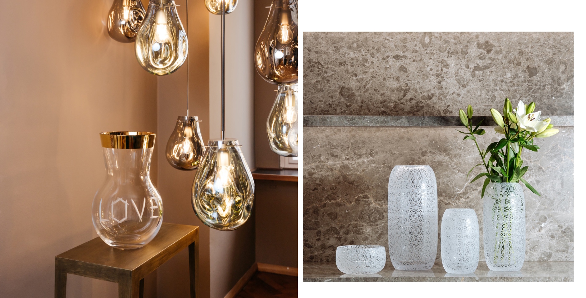 Коллекция Metamorphosis символизирует трансформацию и эволюцию, отражая их в динамичных формах и точной огранке. Коллекция представлена вазами, подсвечниками и стаканами в розовых, прозрачных, янтарных и дымчатых отделках. Каждое изделие, выдуваемое вручную, сочетает в себе традиционное мастерство изготовления стекла с современной выразительностью, запечатлевая мимолетный момент перемен.