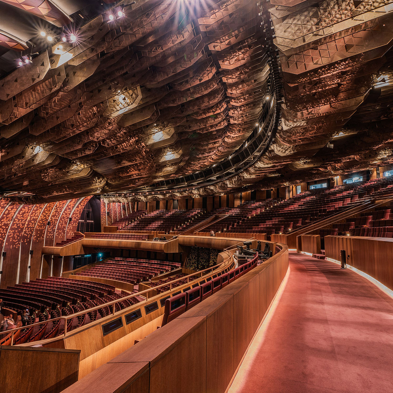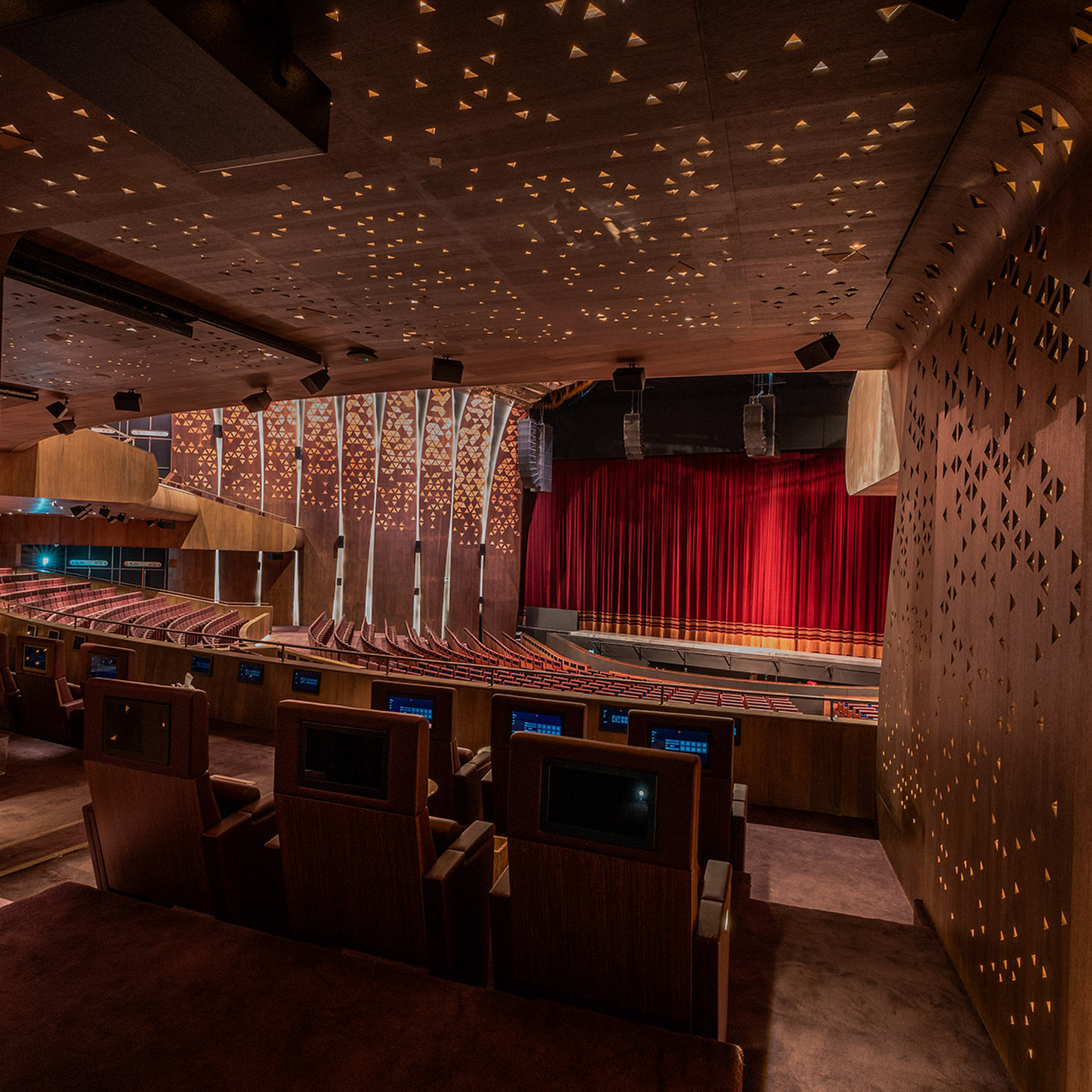 Значительный вклад в реализацию проекта внесла компания Poltrona Frau, оснастив центр мебелью из своей коллекции для общественных зон и разработав индивидуальные кресла для главного театрального зала. Все элементы были тщательно интегрированы в эстетику так называемого «цифрового салмани» — современного направления, в котором традиционные архитектурные коды Саудовской Аравии переосмысливаются через призму технологий, инноваций и экспериментального дизайна.